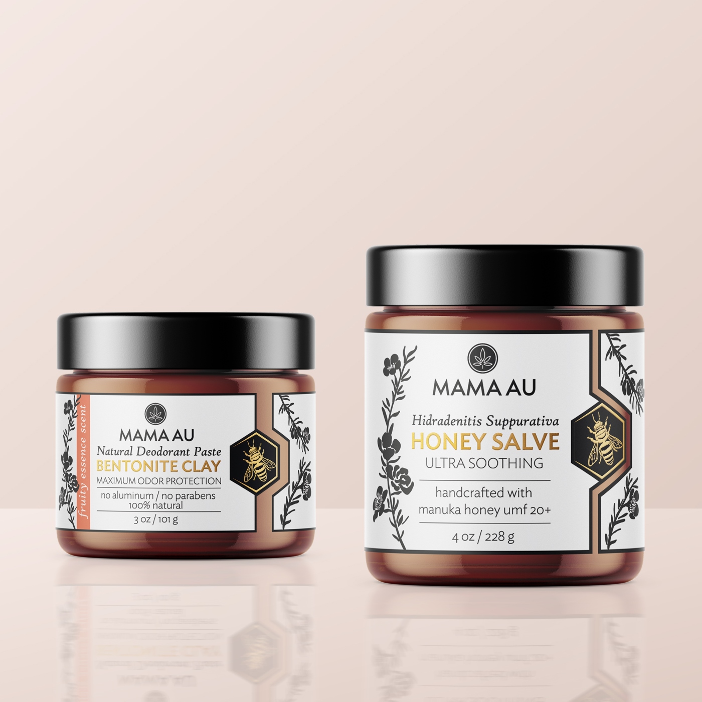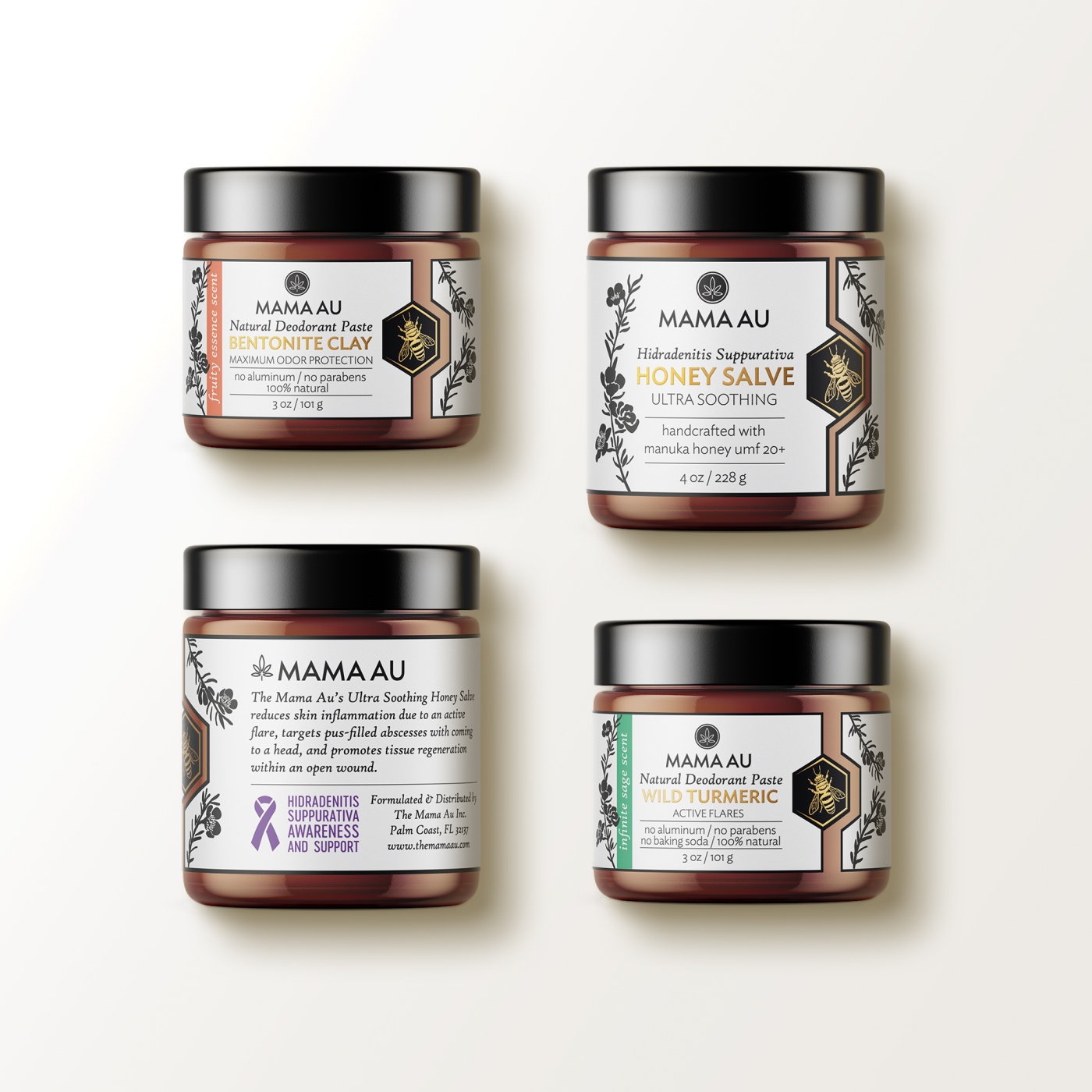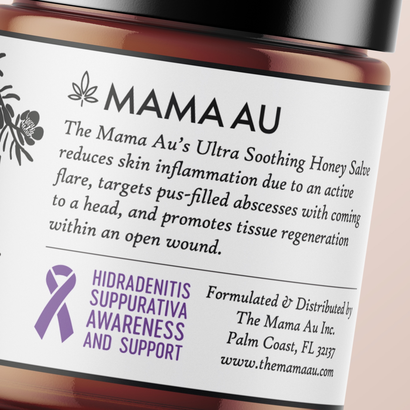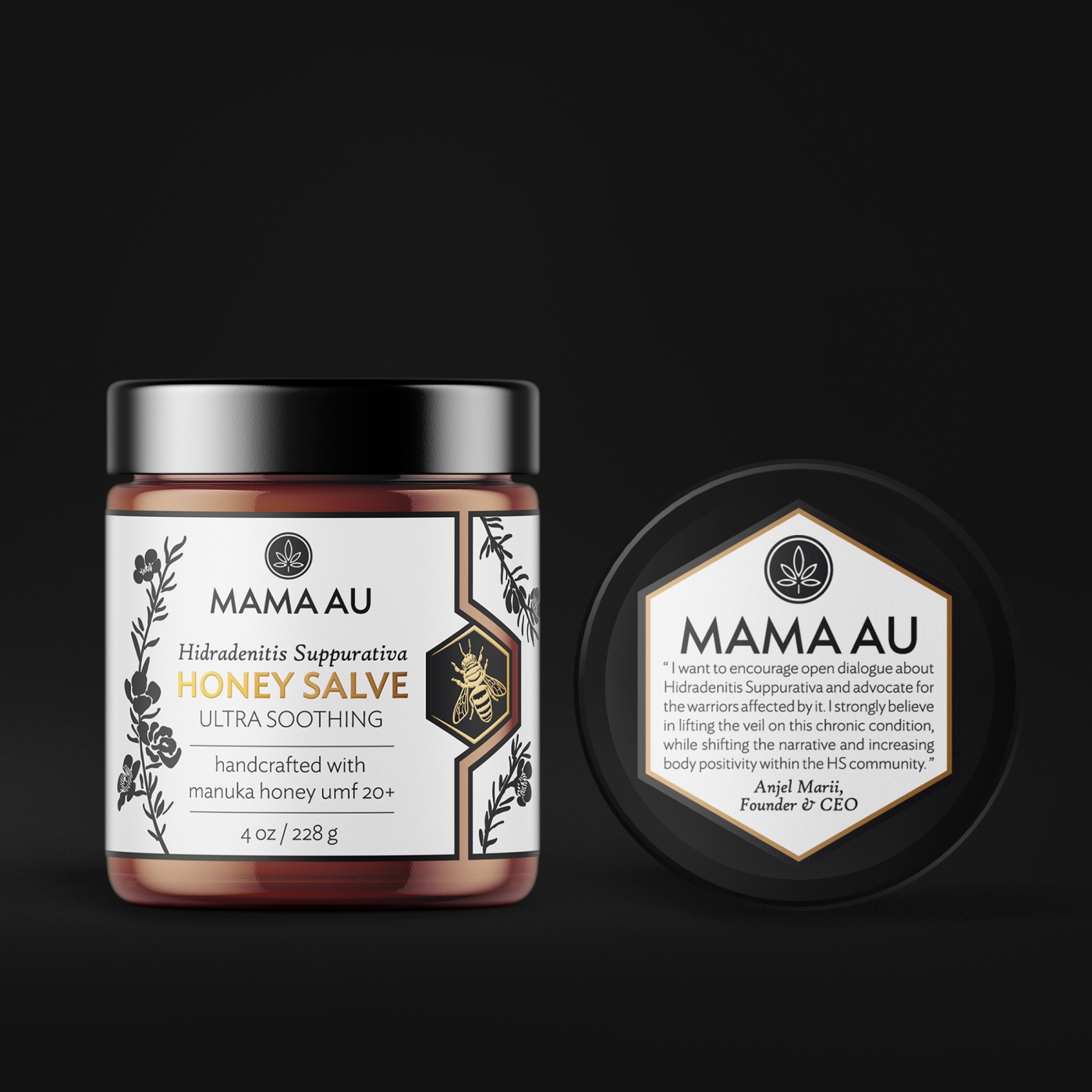 Mama AU是一个专门为患有Hidradenitis Suppurativa的人提供护肤产品的品牌。由于用于慢性自发性皮肤病患者的产品严重短缺,该品牌创始人Anjel Marii用自己的双手制作了所有基于麦卢卡蜂蜜和蜂蜡的有机护肤产品。非盟妈妈的目的是鼓励就HS进行公开对话,这一目标在标签设计中得到了体现。