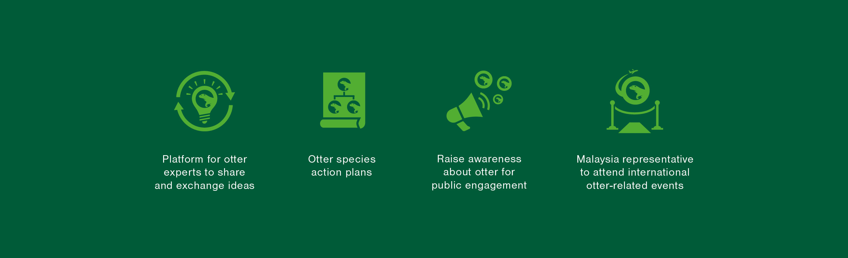马来西亚水獭网络 (MON) 是一项全国性的倡议,旨在推广水獭作为湿地?;ご笫?。他们改善了马来西亚水獭的地位,并解决了水獭面临的直接威胁。