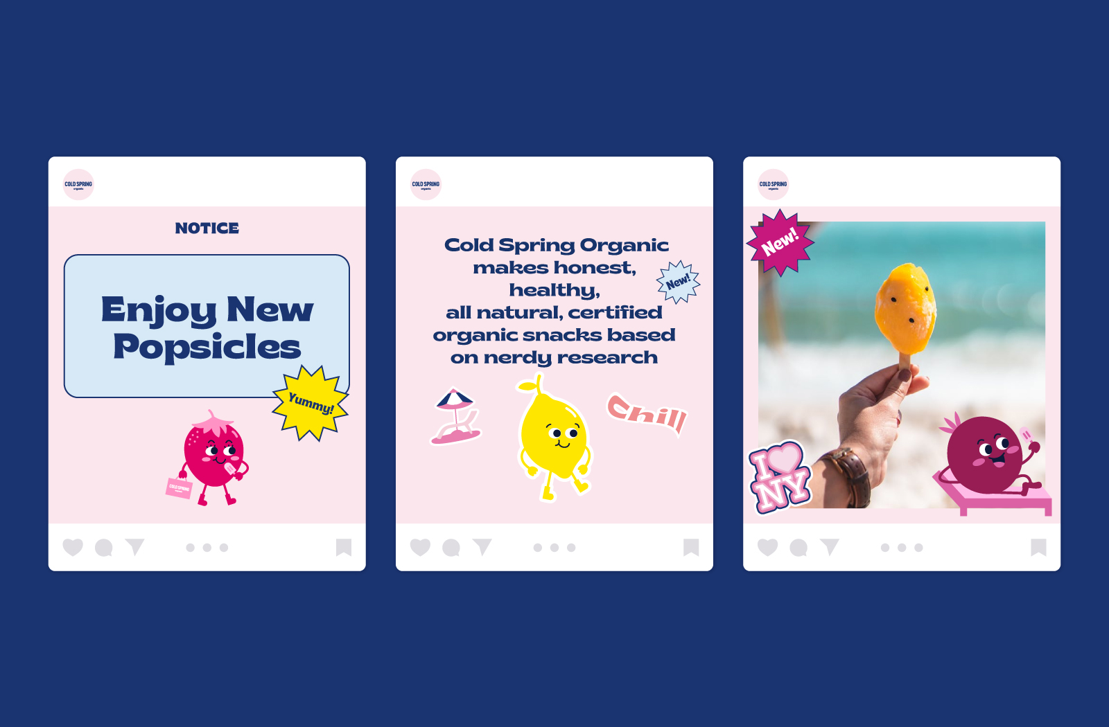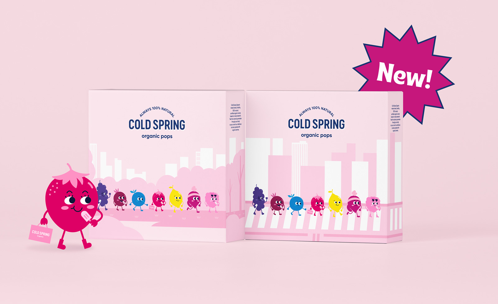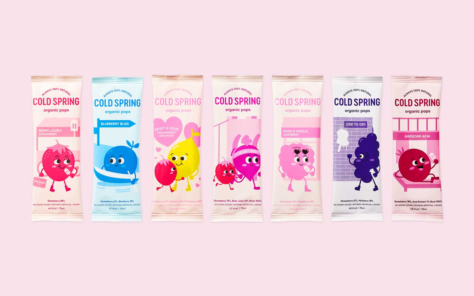 我们通过将 100% 有机概念和客户的纽约背景融入品牌形象设计的故事中,开发了一个年轻而有趣的冰棒品牌LOGO设计和包装设计。此外,我们通过现代标识表达了专业和诚实的形象。Cold Spring Organic 通过可爱的水果角色的发展,向人们介绍了一种友好和平易近人的形象。