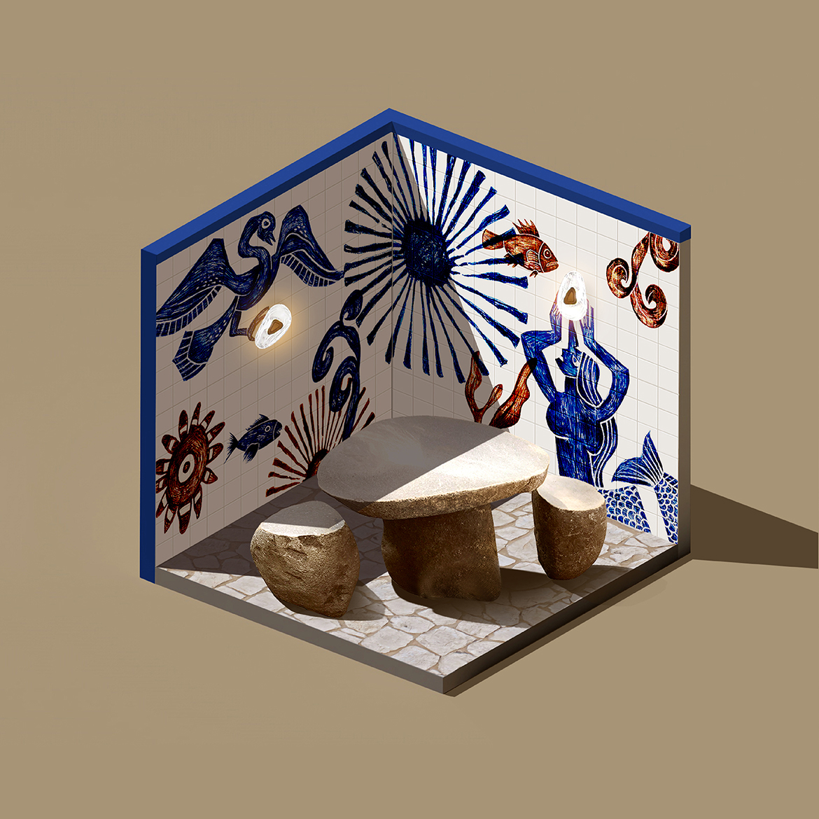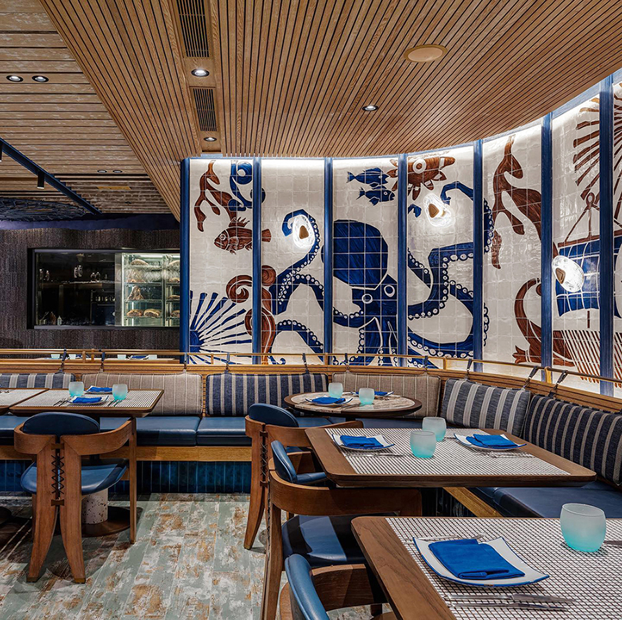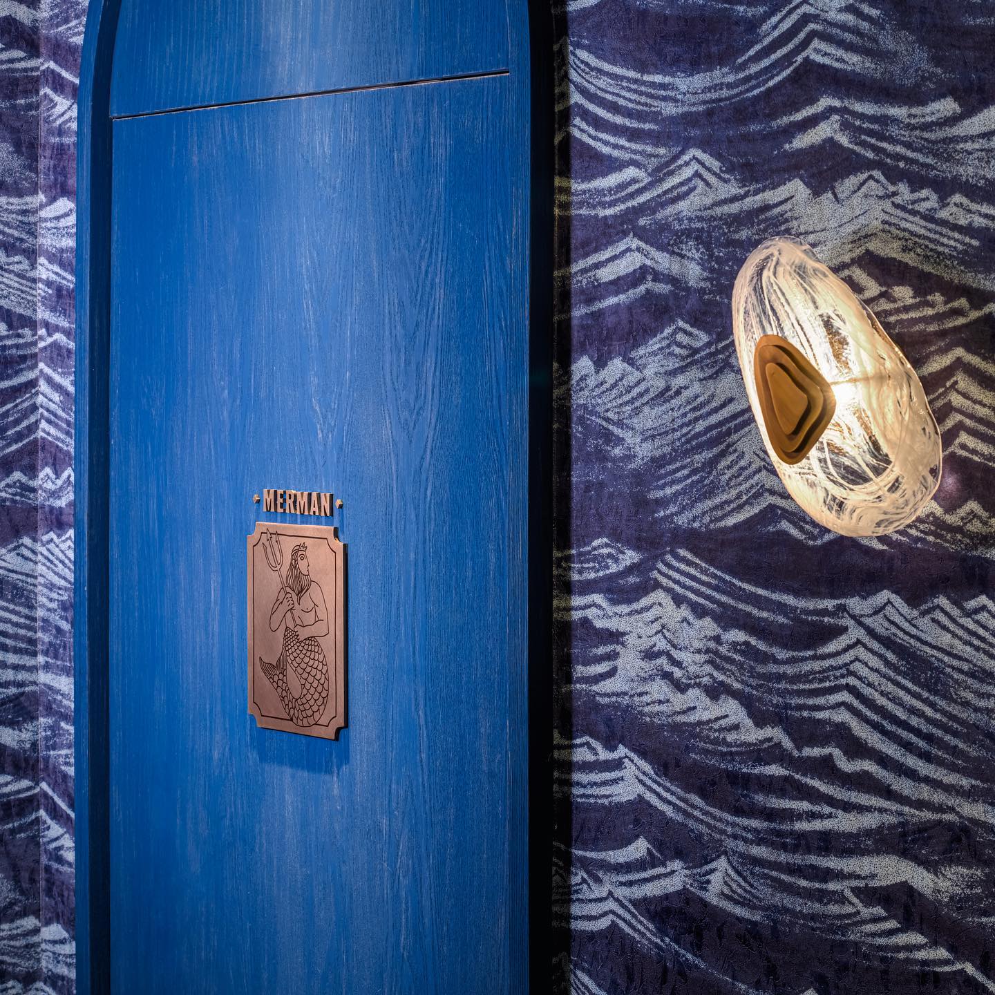 还有5000块瓷砖上手绘美人鱼、深海章鱼、海藻和鱼类插画的特色壁画,与灯光互动,让猎人的故事栩栩如生。