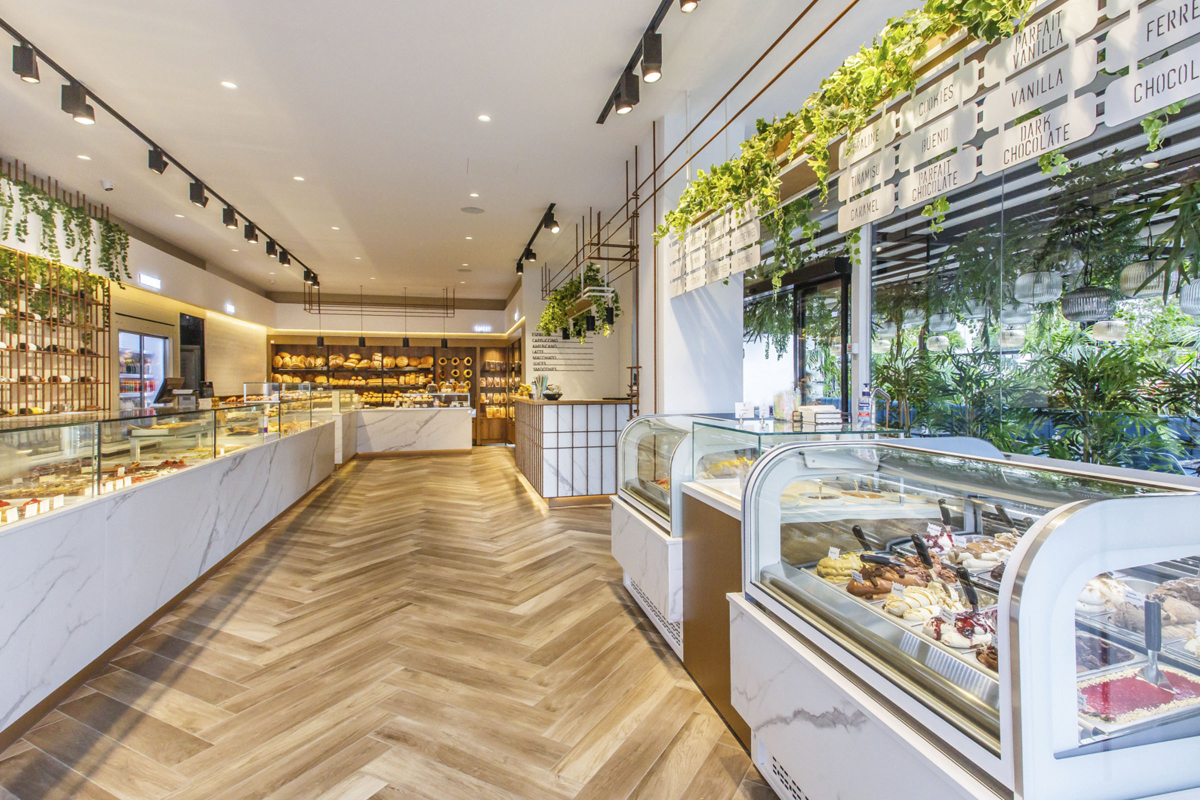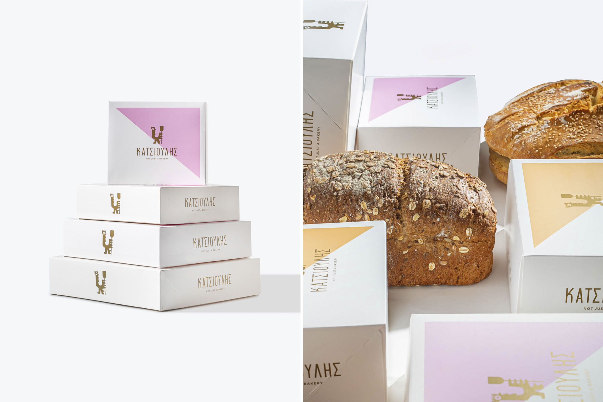 包装:总结更新品牌的视觉传达我们整合了包装。在这种情况下,我们设计了最小的形式,灵感来自人们可以在商店地板上看到的对角线,通过图形设计使建筑更接近,并进一步加强新的企业形象。我们用于包装的调色板保持了身份的一致性,同时有效地区分了其独特的元素(烘焙食品、糕点、冰淇淋、咖啡和饮料),因此 Katsioulis 是…… 不只是一家面包店!