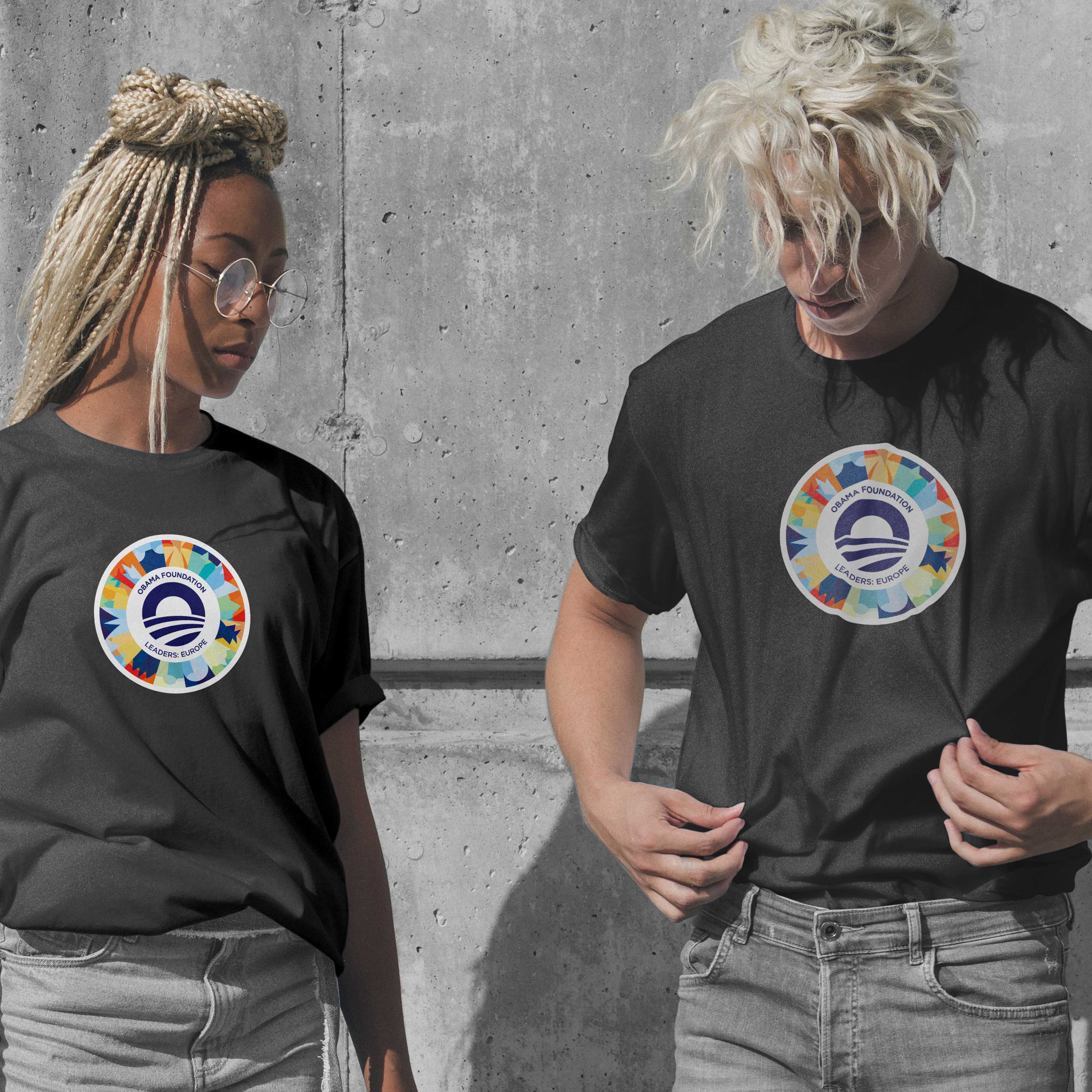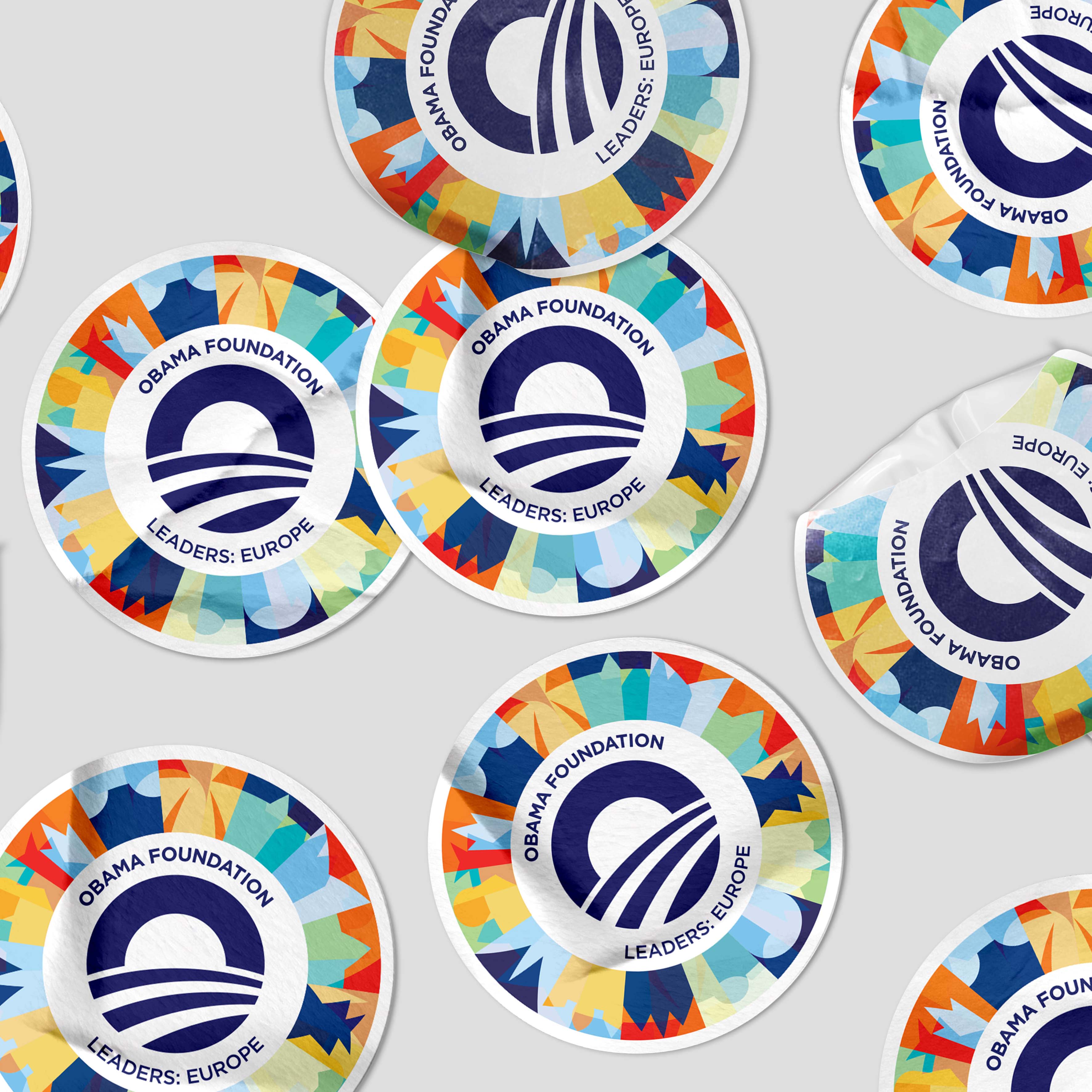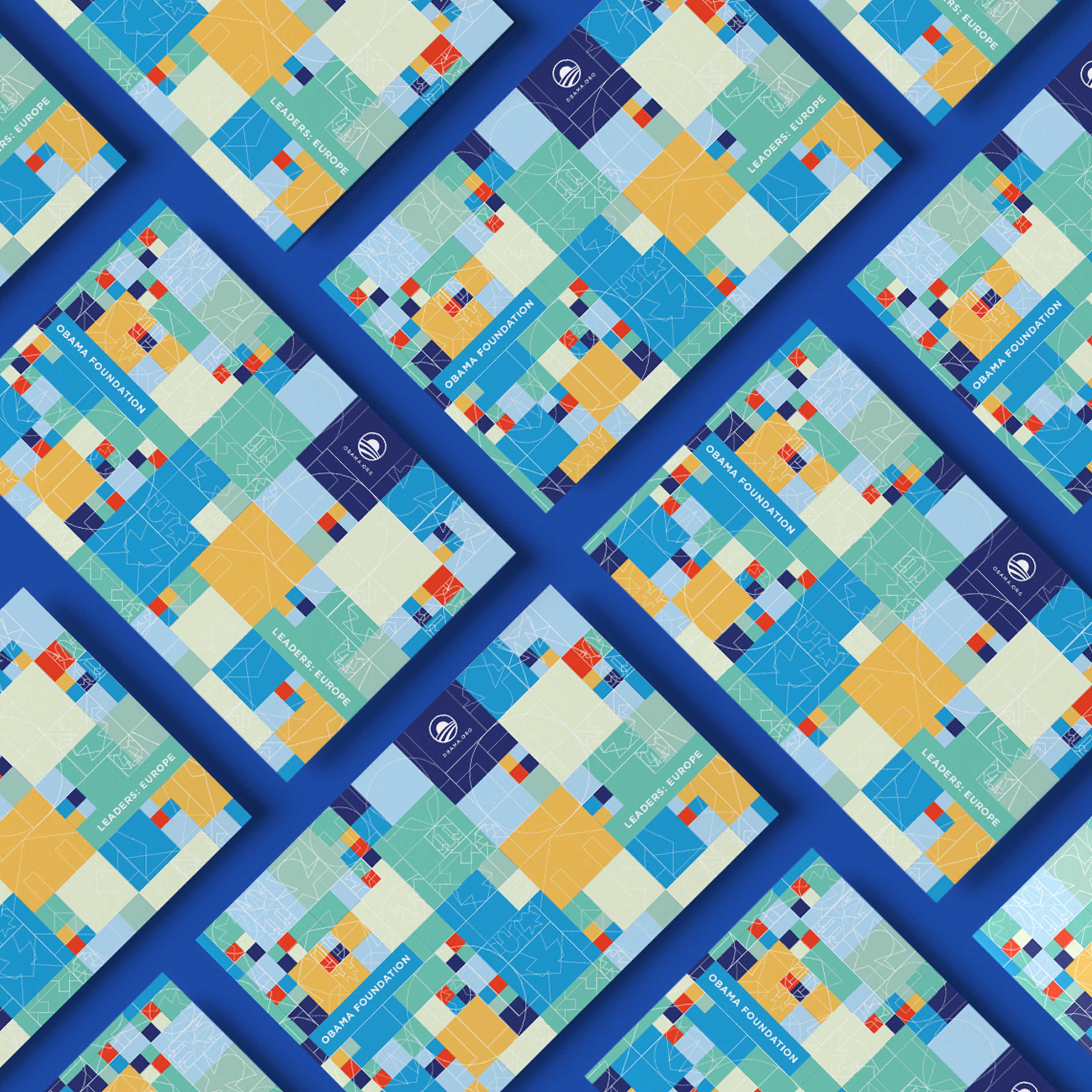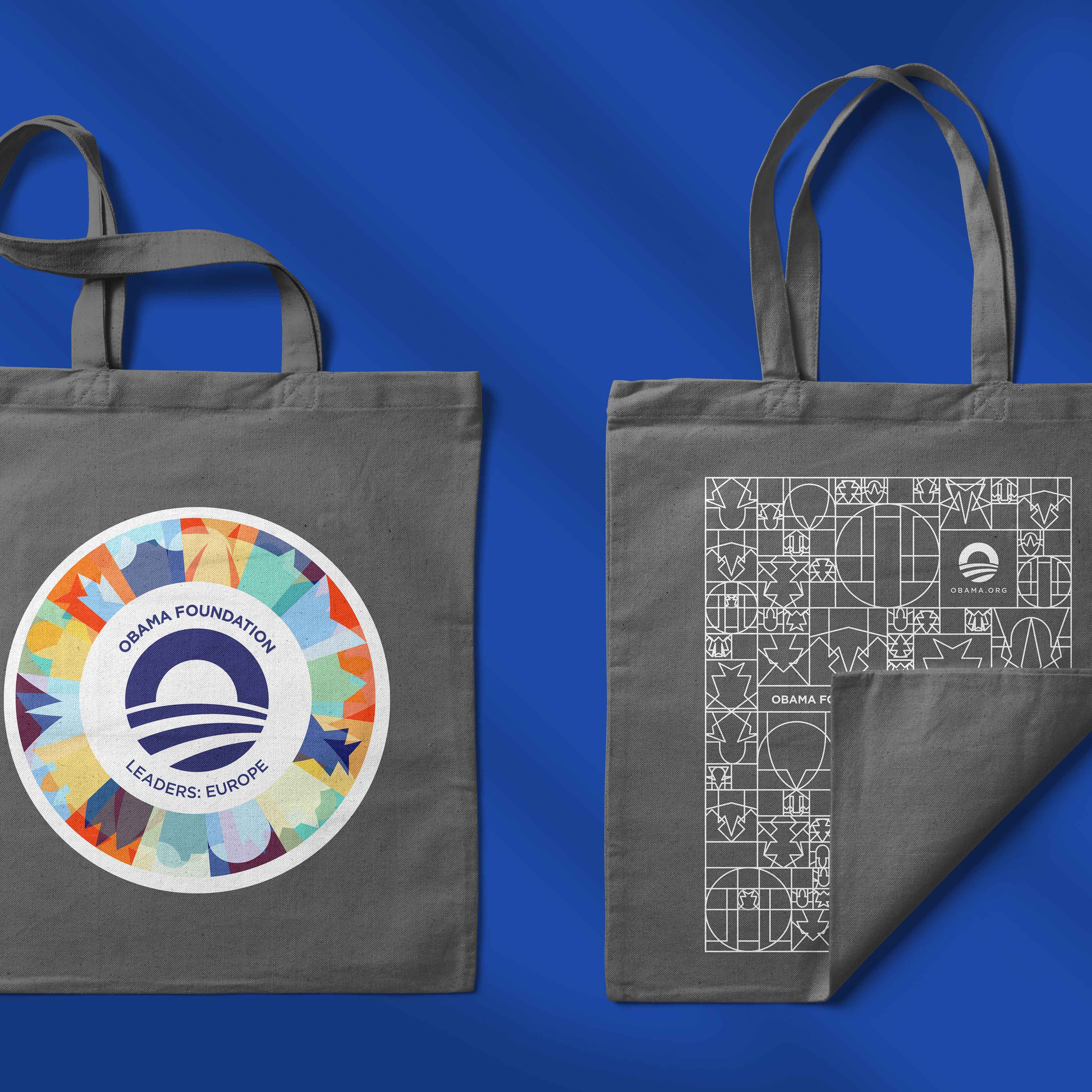 在根据奥巴马基金会的颜色指南确定了纹章方法和鲜艳的配色方案后,我们创建了我们在活动商品中使用的图案,例如手提袋、T 恤和标签名称,我们必须为在线媒体为在线会议创建视频和背景。
