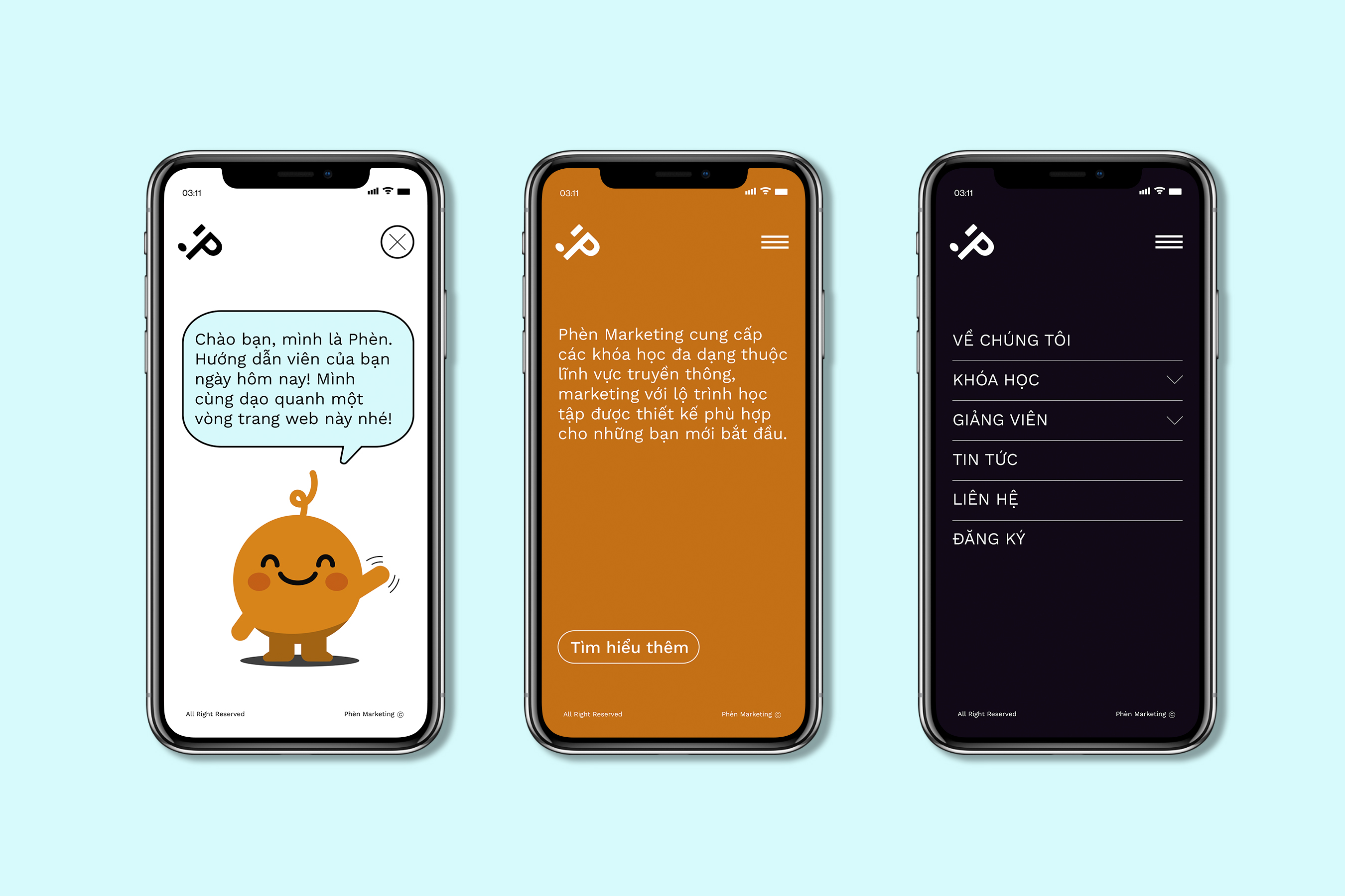 Phen Marketing 是一所越南学院,专门从事营销、传播和广告领域的培训课程。他们的目标受众是想要从基础层面学习营销的学生或上班族。然而,过分关注收入,忽视品牌识别的同步性,导致他们在做生意时出现很多问题。所以我被分配重新设计一个全新的