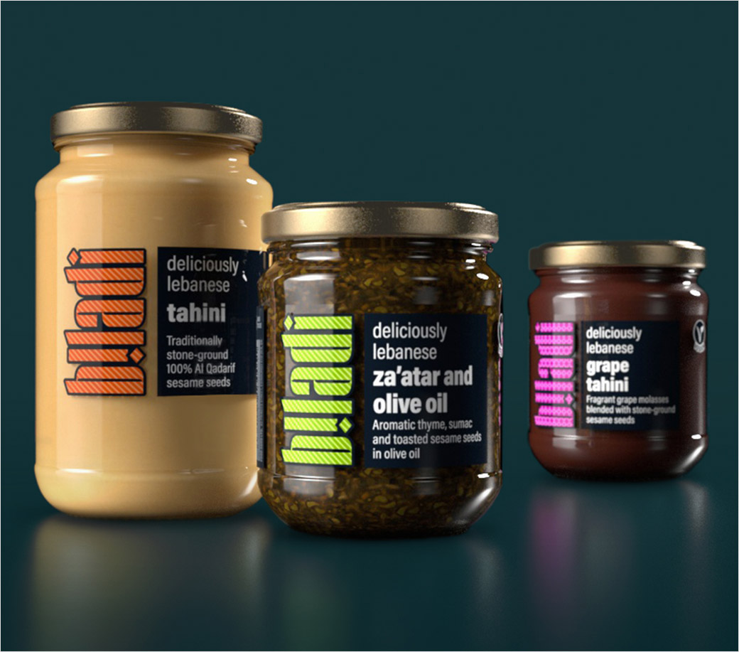食品品牌形象设计的垂直方向据称是“在千篇一律的海洋中的主要破坏者”,并伴随着“美味黎巴嫩”的标语。顺便提一下,Biladi 这个名字是阿拉伯语中“我的国家”的意思。