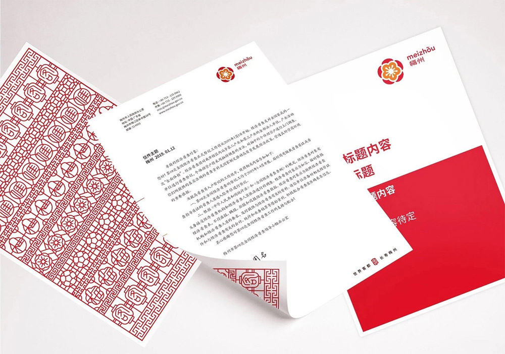 新梅州市城市形象LOGO设计以梅花为形,与“梅州”有直接的联想,图形细节具有传统中式纹样的特征,表现形式又符合时代精神,具有现代标识应有的符号感。
