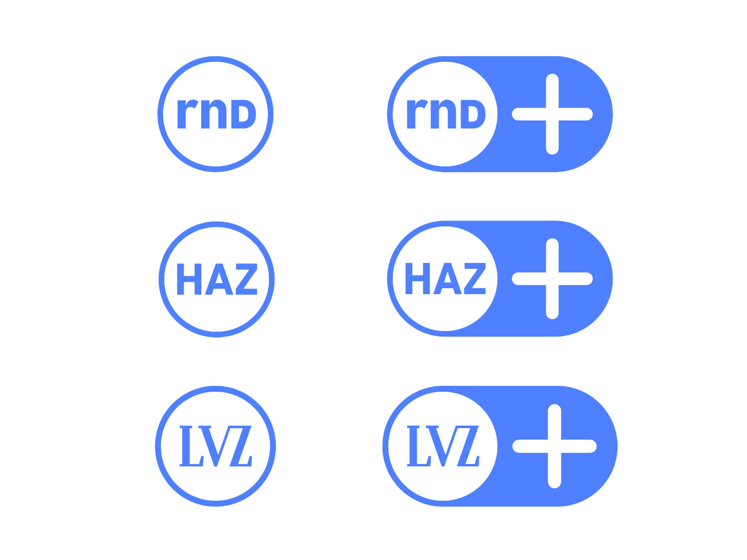 标志设计发生变化,区域新闻品牌的标志也进行了重新设计。例如,Hannoversche Allgemeine (HAZ)的标志表明新闻品牌的标志现在以圆形为基础。同时,圆圈作为其他设计元素的基础,例如用于标记付费内容的加号。
