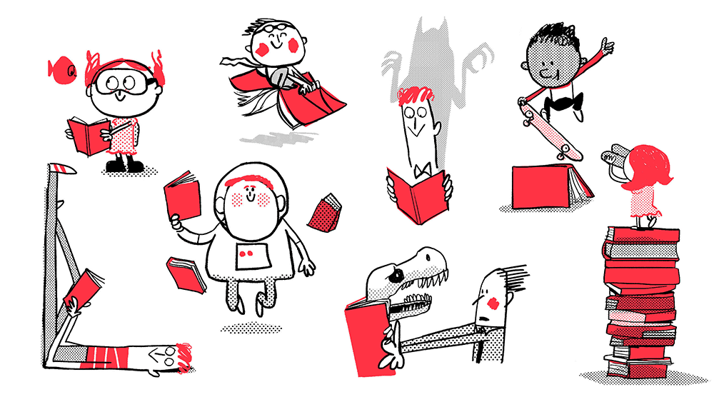 另外,新形象也非常直观的表达了阅读书籍带来的乐趣,LOGO中的每一个单词都可以是一本书,因此可以将LOGO以几种不同的组合使用(可参看下面的gif演示),既简单又好玩。和新形象一起推出的系列插画则由英国专业插画工作室 Mrgriff 创作完成。