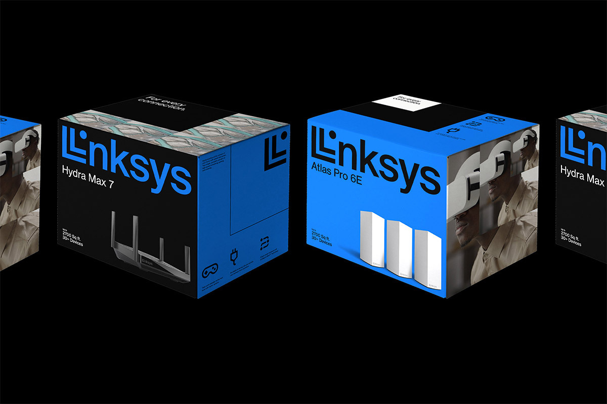 作为全球知名网络设备品牌,Linksys 既亲密又广阔。真实的人物形象与强大的自然现象形成鲜明对比,彰显了 Linksys 的全球视野和影响力。在色彩方面,Linksys 回归并刷新了品牌设计升级的蓝色。现在更加充满活力和精致,这种标志性的颜色与深黑色和电子粉彩相得益彰,营造出充满活力和独特的调色板。