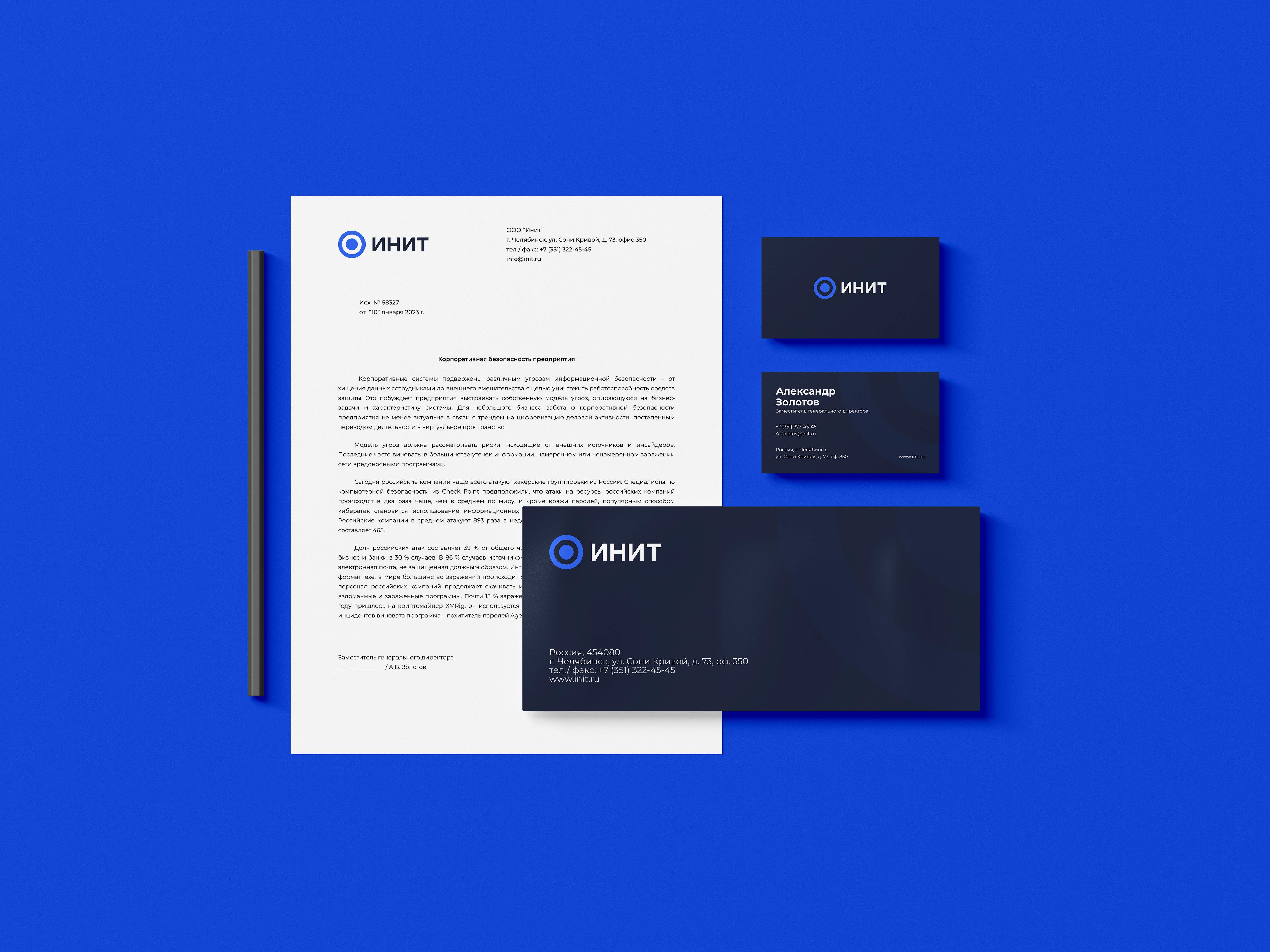 由于Init是一家提供全面业务安全的公司,因此在品牌设计创意思想取了一个圆圈——一种信息、商业、金融、需要保护的东西的拟人化,下一步在上面的圆圈上方加了一个环,这个圆圈是公司的活动,它的功能,表明客户的价值在控制区域内。戒指是抵御外部和内部威胁的屏障。因此,得到了一个体现 Init 公司活动的简约标志。借助这样一个简单而令人难忘的徽标,可以创建各种情绪模式,将其用于促销活动,纪念品(徽章,钥匙链,贴纸)。