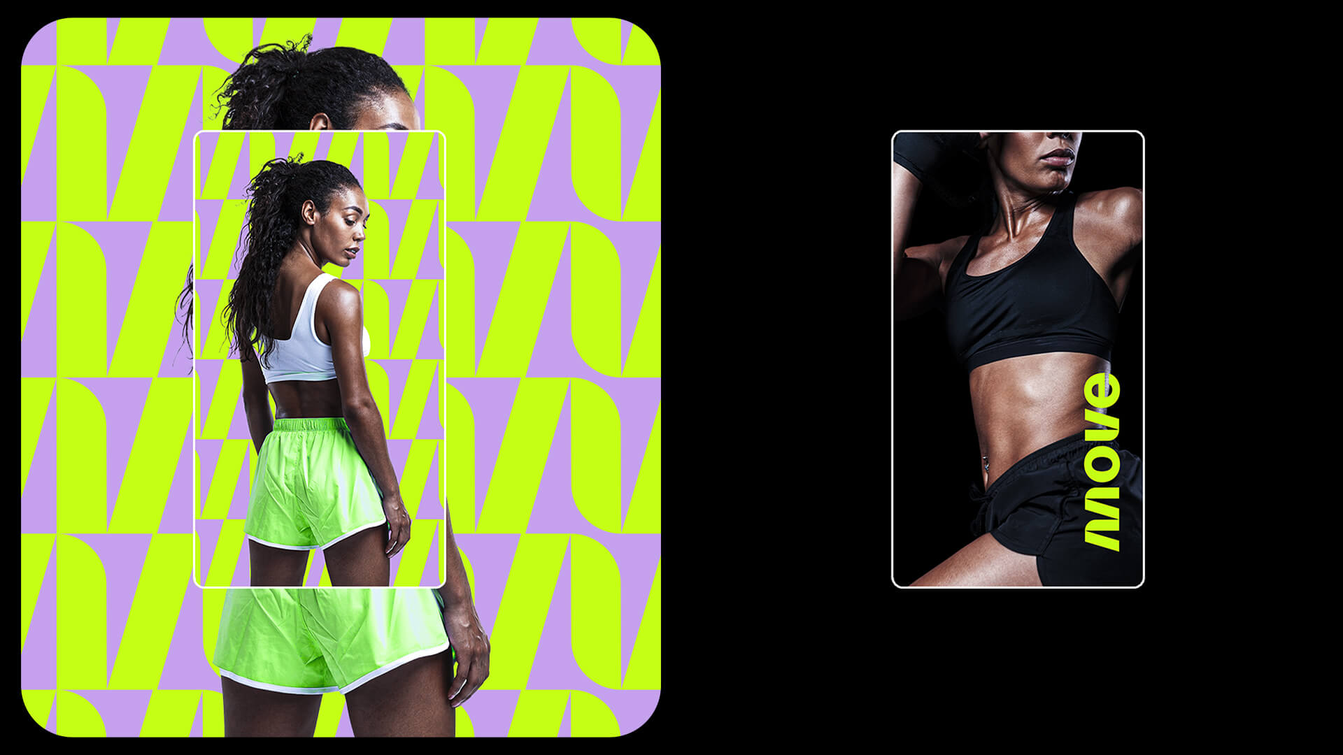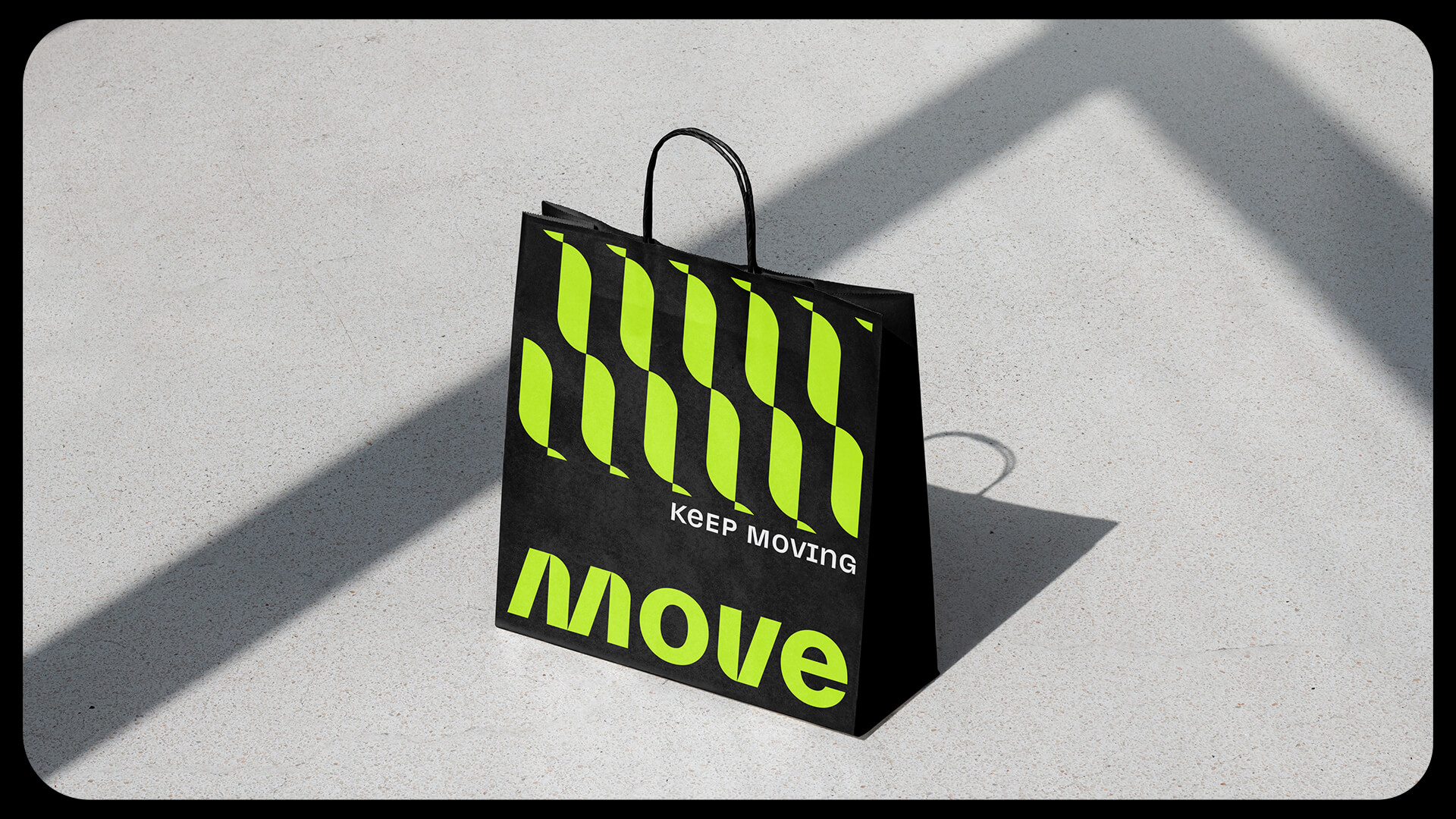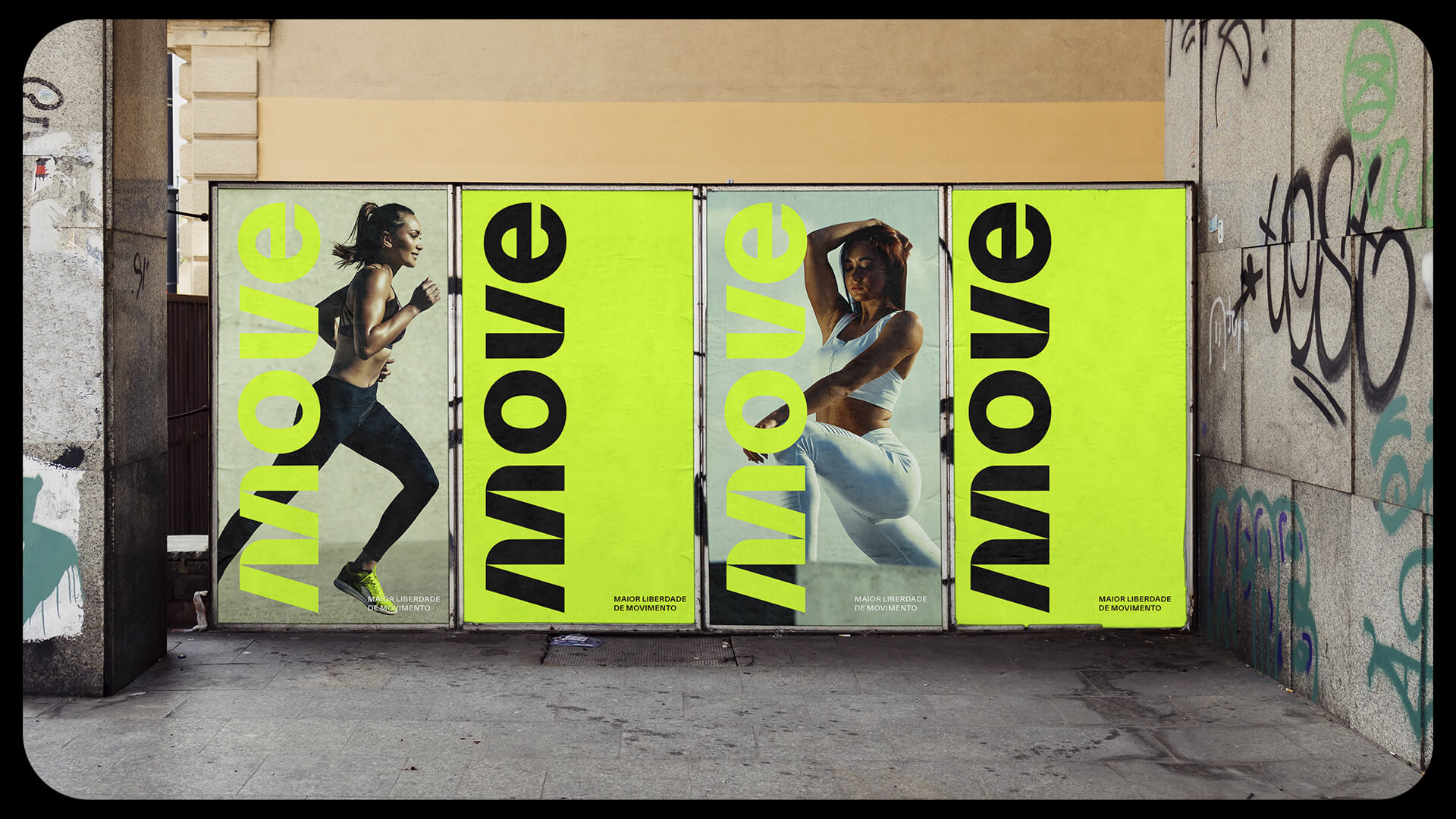 品牌设计的属性和个性,创建了排版,线条强烈,突出字母M和V,运动,一个随身体移动的品牌。而对于Move品牌的整个视觉世界,着眼于品牌的属性和语气,因此带来了明亮、强烈、动感的色彩,为品牌带来了更多的活力和多功能性。对于图形,创造了更多的元素和线条,代表服装的这种运动和流动性,所以一切都补充和加强了品牌的个性,与公众有很强的联系,让女性感到强大。