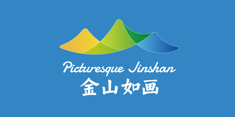 「金山如画」logo标志由色彩缤纷的“山”字异化而成,简约又富有动感。形态上,整体简洁明快,充满张力与动感,形似金山美丽的金山三岛、农家风屋顶,又如欢乐的海浪,烘托出如画般的诗画意境。