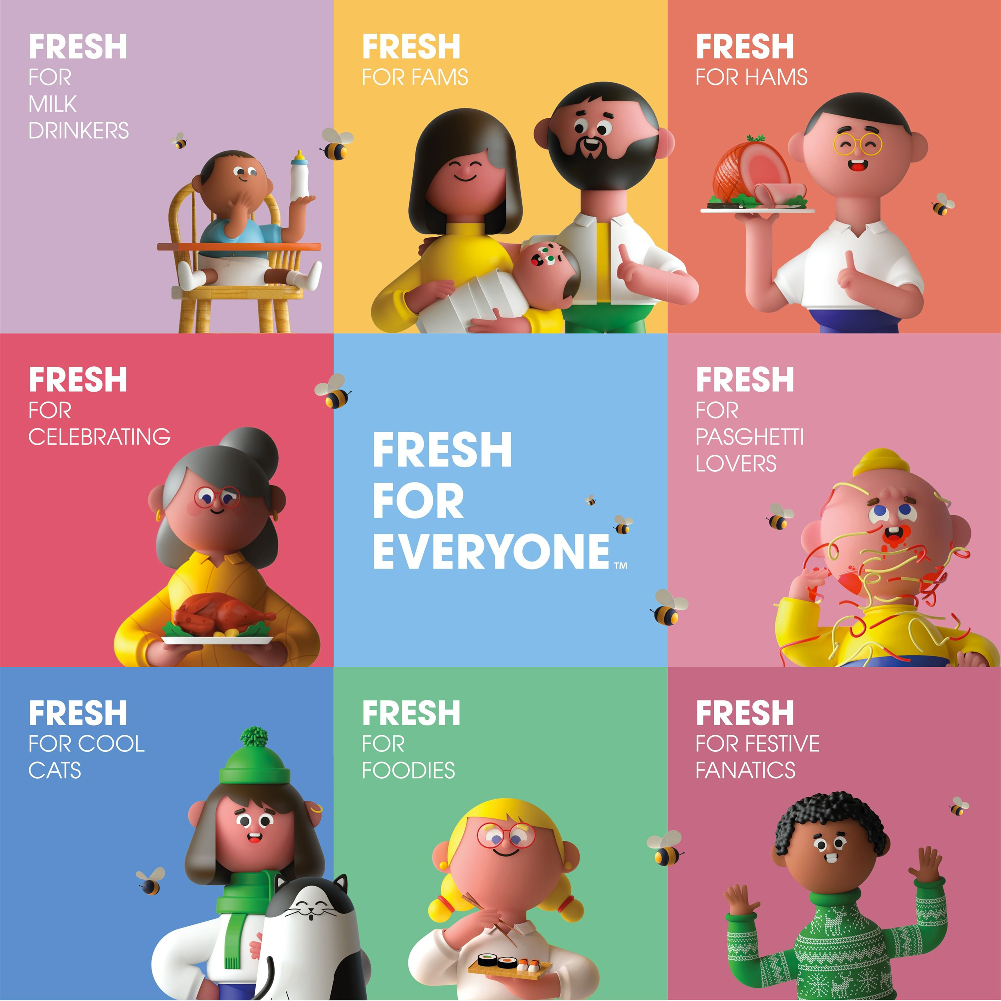 为配合新形象,Kroger 还推出了一系列3D卡通人物造型。每个人物均有丰富的表情动作,表达了Kroger 以一种包容,关怀,乐观和有趣的方式代表其客户,员工和社区。