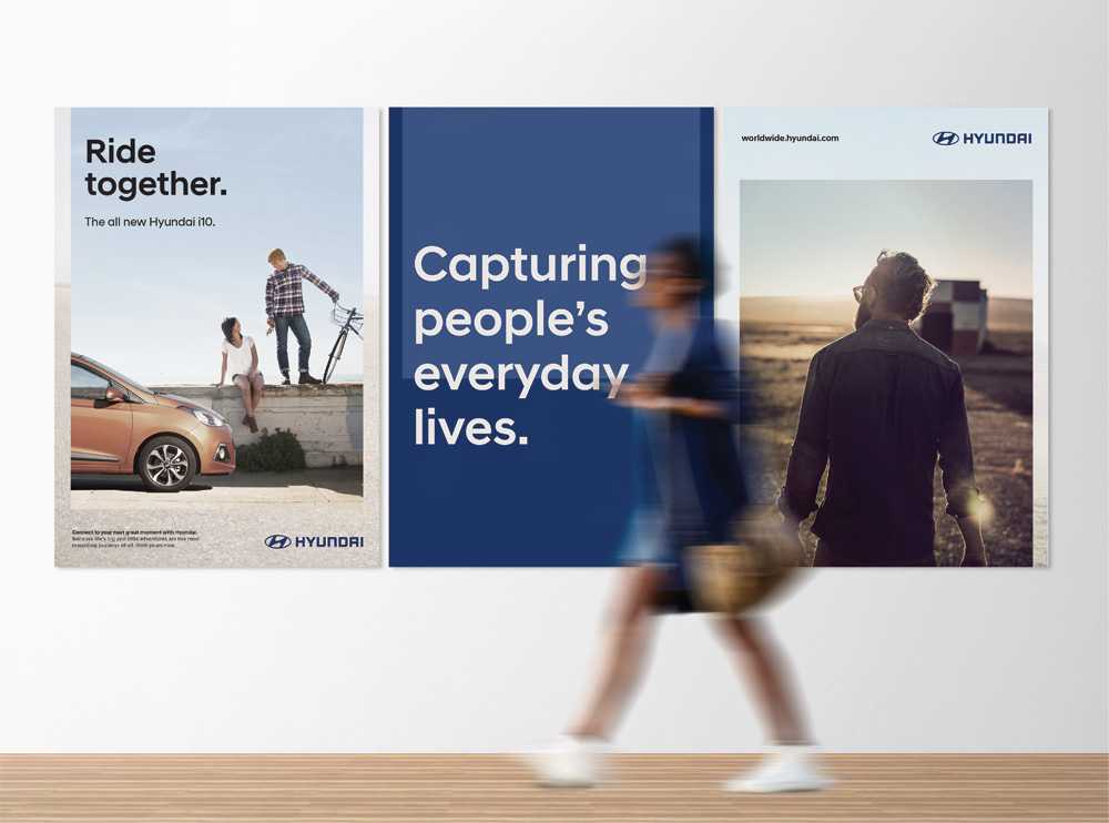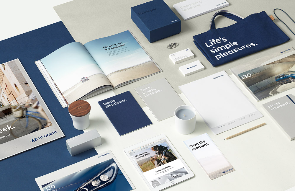 2017年上旬,现代汽车推出了由其内部设计团队 Creative Works 设计的全球统一标识。新标识图形部分的结构继续和原来的标识保持高度一致,但为了能够给品牌一个更灵活的延展性,更好的适用于印刷和数字媒体中,新标志将去除金属立体效果,统一采用深蓝色的配色进行扁平化设计。