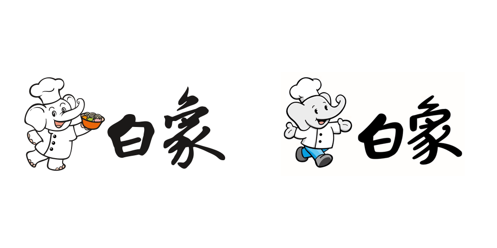 相比上个版本,首先新版卡通大象去掉了「手持面碗」,然后张开双臂。其次白象的轮廓细节进行了简化并增加了阴影效果,而且白象的身体增加了更多灰色,看起来更像是一头穿着厨师制服的灰色大象。另外,大象的裤子增加了蓝色,据说是象征了创新与自然,纯真与活力。