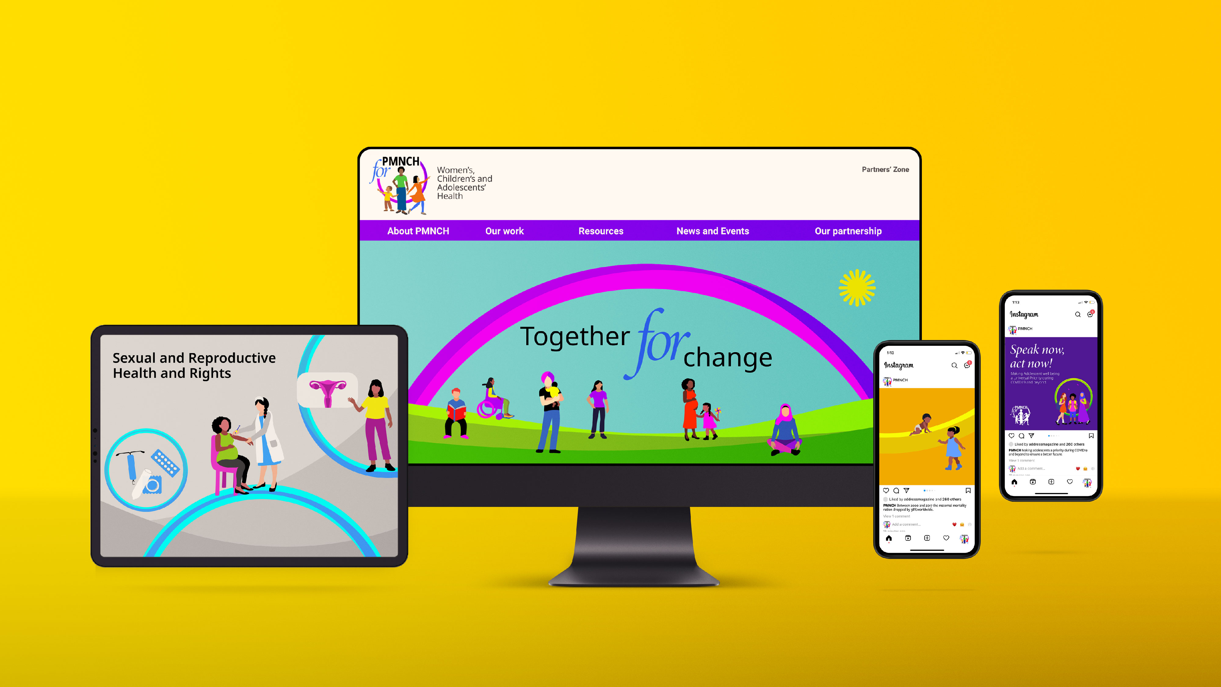 Lopez Design 的战略品牌推广使用“PMNCH + for”一词突出了 PMNCH 的倡导立场,使身份与其核心目的保持一致。这使得他们的众多目标有多种表现形式——PMNCH 促进妇女、儿童和青少年健康;共同促进变革,网络促进影响,联合促进健康权利。PMNCH 的新身份放大了合作伙伴的声音,以倡导妇女、儿童和青少年的健康和福祉,尤其是最弱势群体。