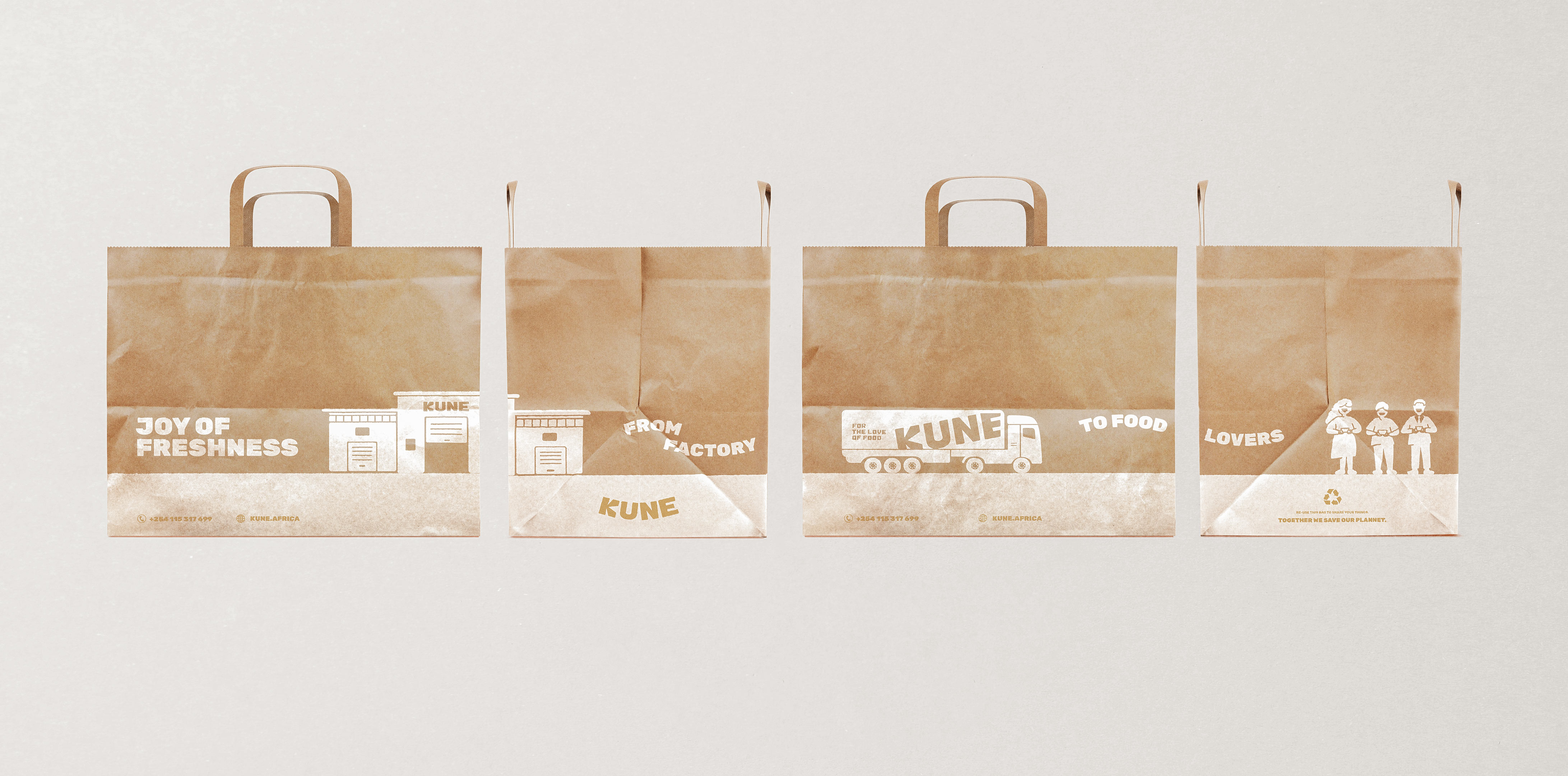 Kune 还为其在消费者餐桌上热腾腾的饭菜提供服务而感到自豪。这就是为什么每个纸袋都说明了将食物从工厂直接运送到美食爱好者的过程,以表明这一承诺。