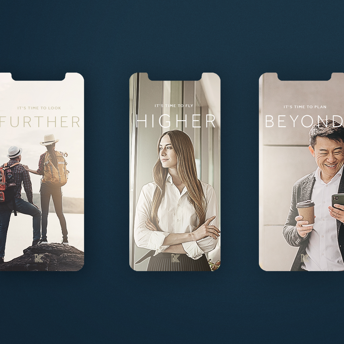 金融公司VI设计,我们创建了一个由鸟+字母K+方向箭头的概念组成的组合。在直线型网格上工作,有明确的角度。在排版上,编辑了一条无衬线,在上面的部分增加了曲线,带来了一种运动感和现代性感,当然,也遵循了符号的审美。虽然符号有顺序的元素、概念和线条,但它仍然能够简单、准确地传达其含义,同时也实现了公司想要实现的观众细分。