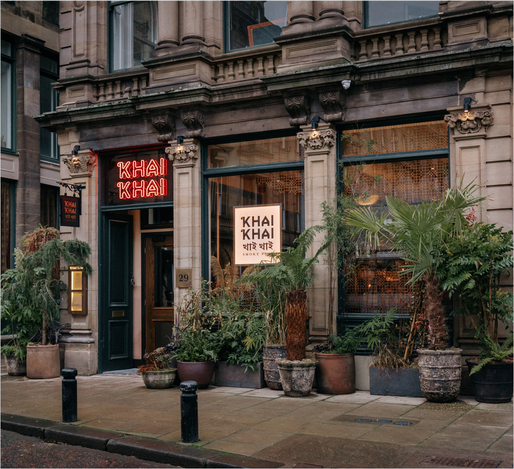 “Khai Khai 是一种全新的食品和饮料概念,以‘Smoke play’为中心,反映了技艺精湛的厨师用煤烹饪的专业知识,让人想起黑暗、火焰和透明之间不断变化的相互作用。这些基本的烹饪技术为食物提供了信息,也帮助塑造了 Run For The Hills 的品牌世界和室内设计概念,”该机构说。