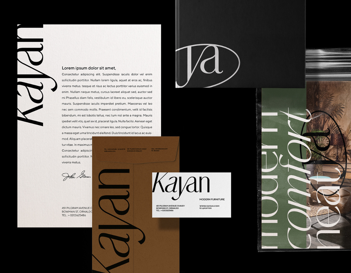 Kayan 是一家位于埃及的现代家具店,提供各种精选的精致家具和古董,标志的重新设计过程受到他们独特和艺术风格的家具的影响。