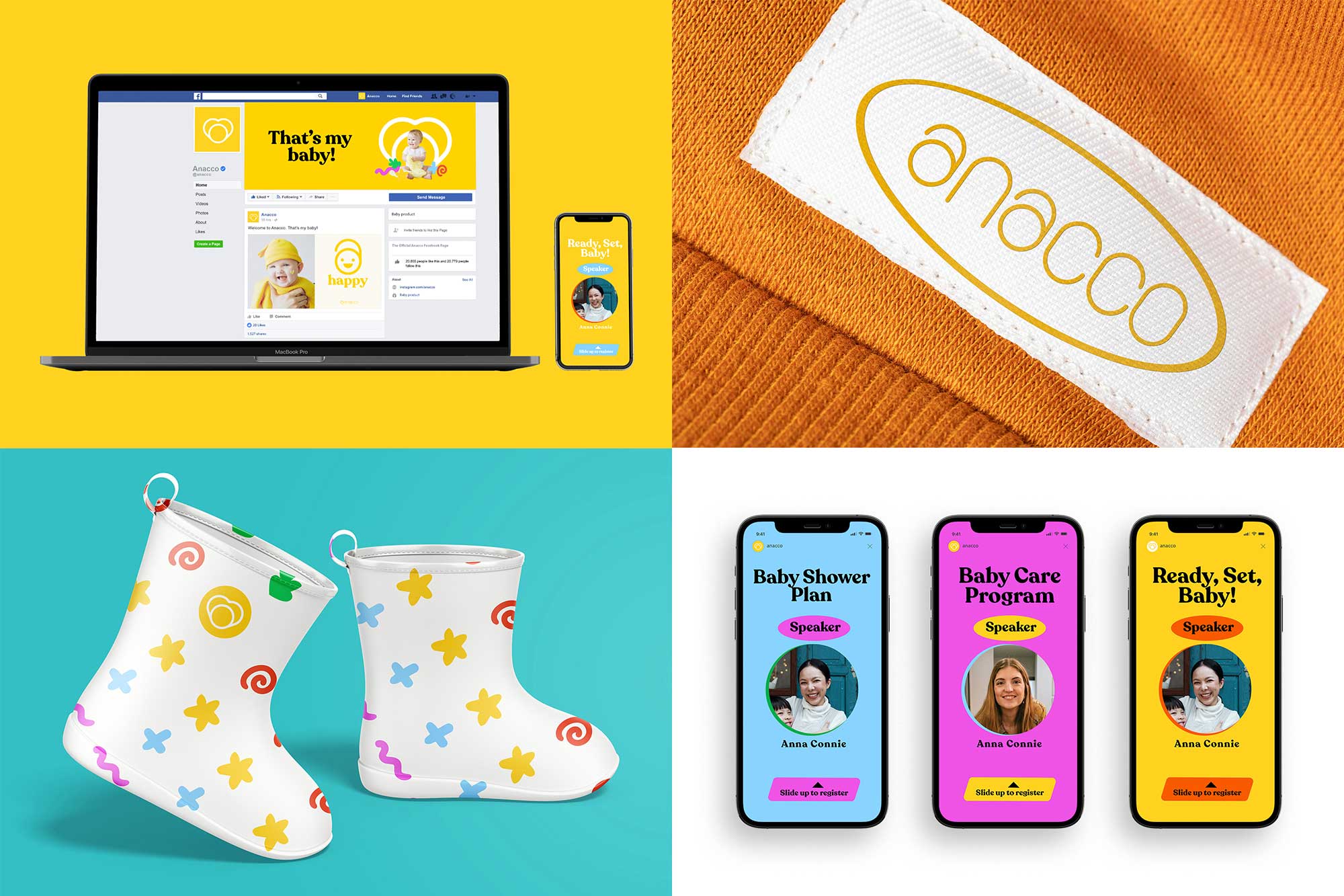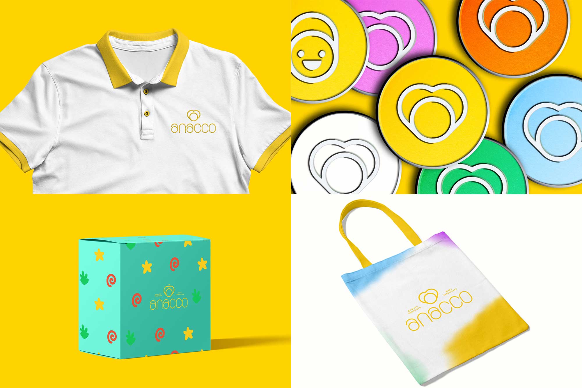 对于最终的标志,也按照管理层的要求,我们创建了一个专为 Anacco 设计的自定义字体。我们保留了字体的笔触并对其进行了改进,使其变得更清晰、更真实。Tribox Design 确保保留设计的友好外观和感觉。为了与众不同,该团队考虑了婴儿的社交和情感发展。设计师通过创建代表婴儿不同基本情绪和面部表情的表情符号,使字母 A 变得实用。至于品牌标志或图标,我们运用黄金比例设计,将两个字母A组合成一个心形,象征着母婴之间的特殊纽带。字母 A 还可以灵活地用作锁(如包装标签信息所示),代表公司如何重视儿童的安全和?;ぁV劣诠俜降牡魃?,我们选择了温暖明亮的颜色,因为它适合孩子的发育并鼓励孩子的发展。Anacco 的新品牌标识有趣、现代、引人入胜、性别中立、包容、灵活且适用于包括营销计划在内的各种环境。