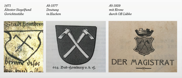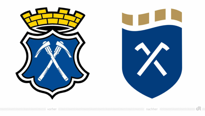 之前的标志是城市的国徽和放在它前面的蓝色文字商标的组合,于 1994 年注册为商标,此后几乎没有改变使用。在新的象征性标志中,城市徽章被重新诠释并赋予了简化的设计。城徽中的钩子也可以在新的象征符号中解释为交叉的宫廷杖,参考了城徽的原始历史形状。纹章城徽应继续作为主权象征使用。