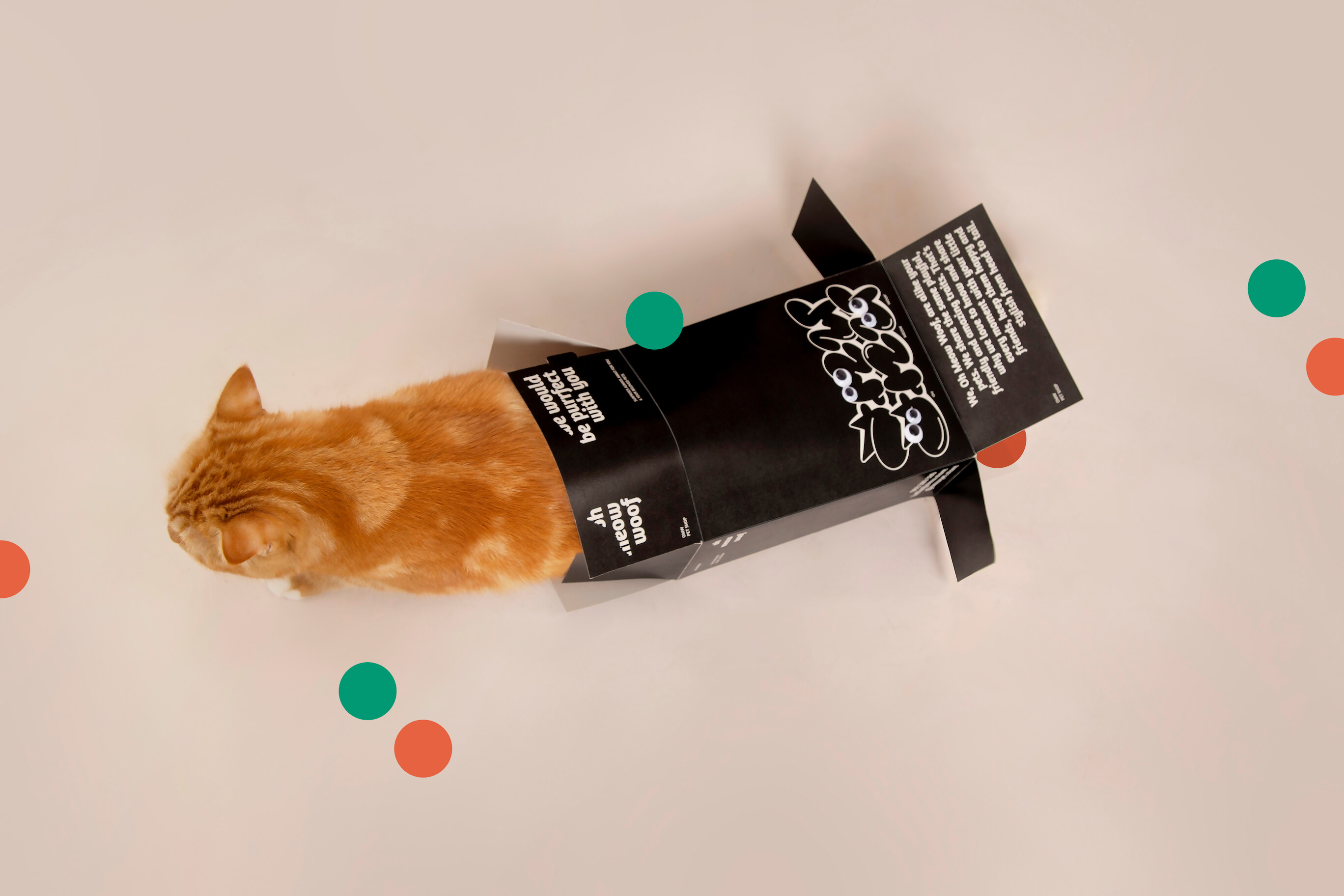 黑色和米色的原色调色板无疑设置了游乐场,为彩色说明性的狗和猫做好了准备。在内部实验中,我们发现我们的猫和狗会被粘糊糊的眼睛引诱。当有人开始疯狂撕扯抵押品时,他们中的一些人略微吓了一跳。是的,这就是我们称他们为规则破坏者的原因。