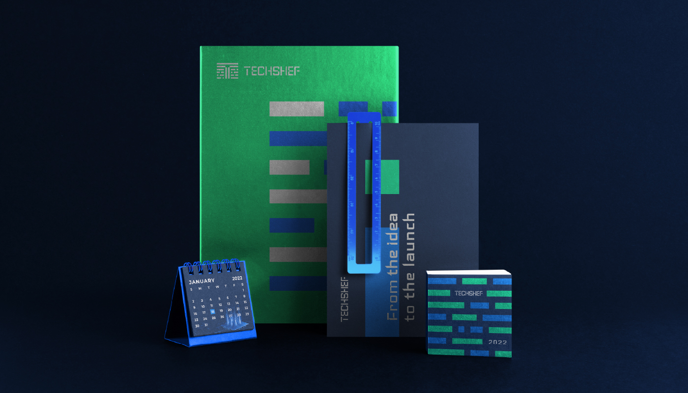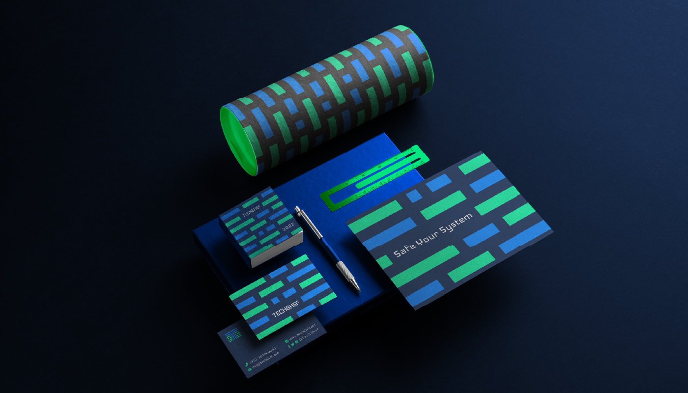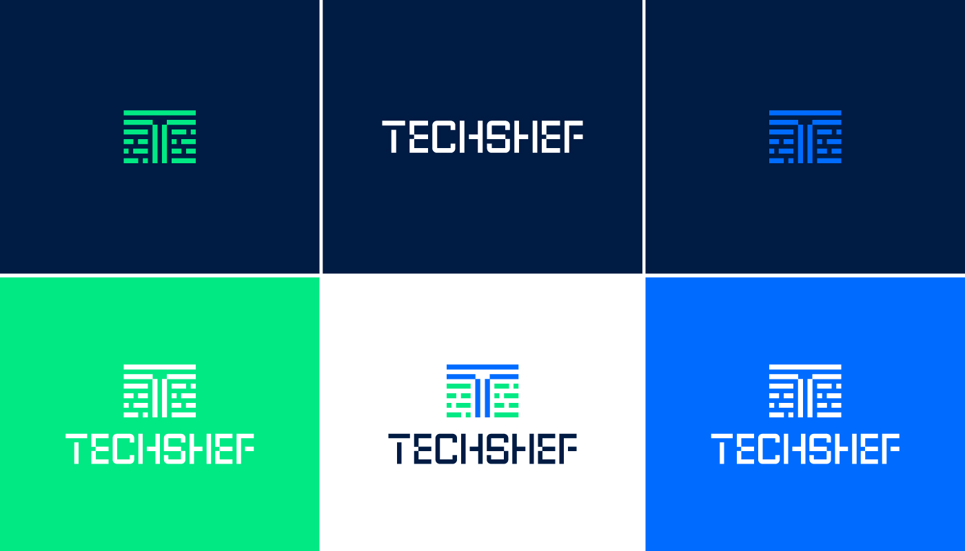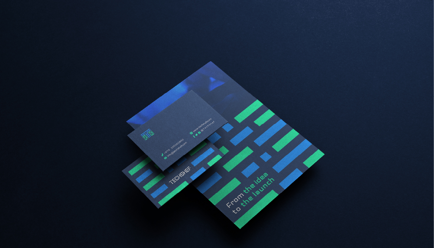 此外,一组想法包括将项目名称 (TECHSHEF) 中的字母 (T) 和字母 (E) 与元素 (Lines) 合并,以达到为项目不同目标服务的徽标。