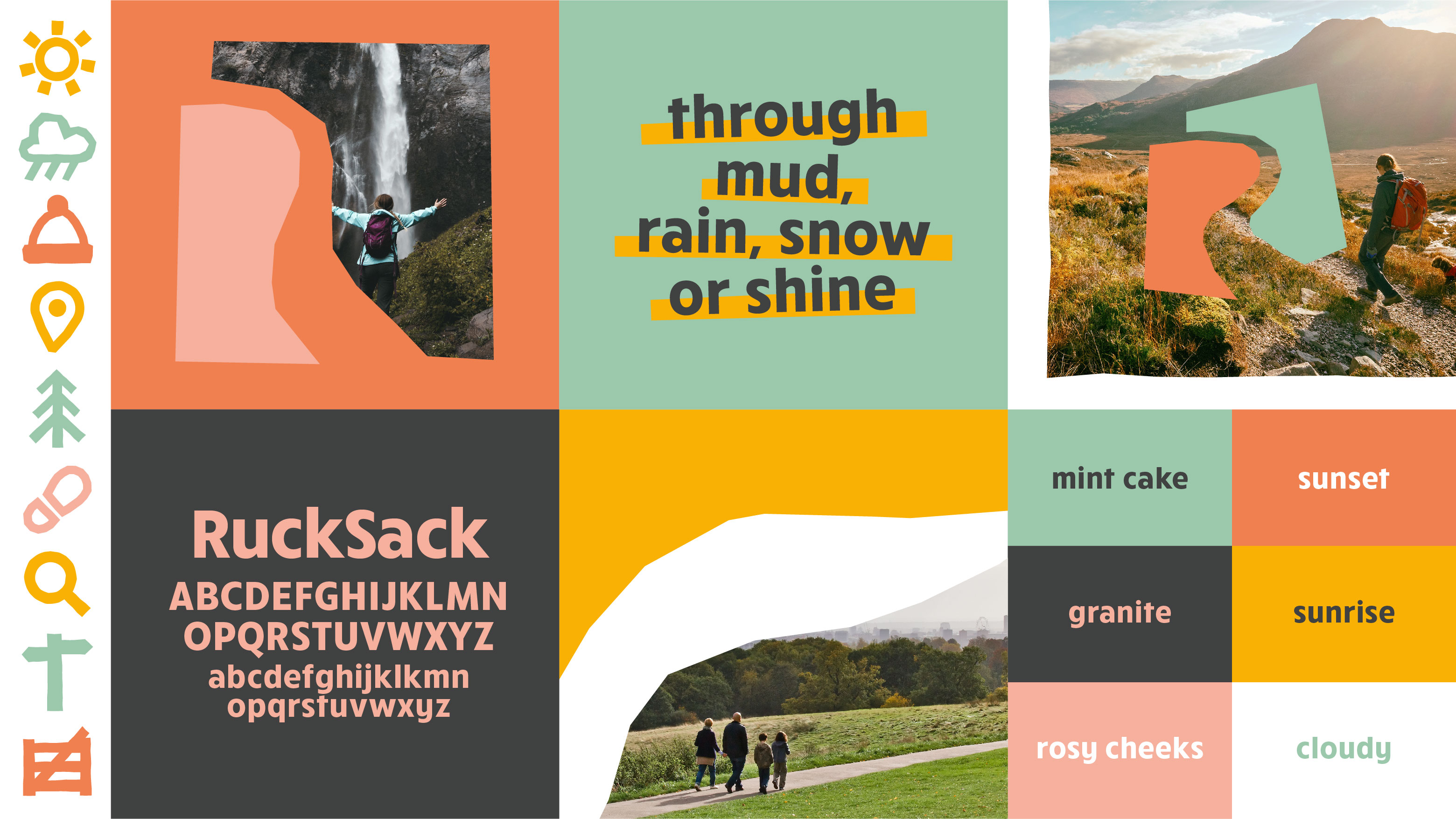 – 粗体字“RuckSack”通过干净的圆形形状将 Ramblers 开放和活跃的特性带入生活。