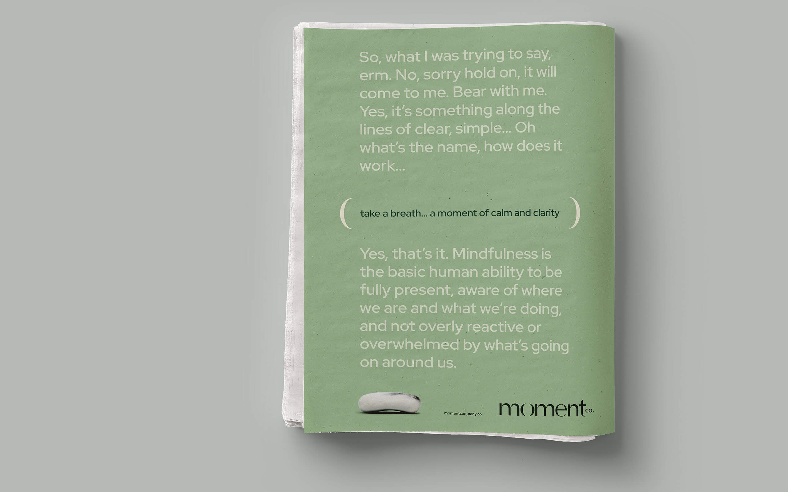 简报是介绍 Moment 作为健康类别中的关键和重要参与者。其目的是被视为心理健康问题的主流和个人解决方案,但也促进社区和更广泛的讨论。与提供策略的 Glow London 合作,我们通过建立一个时刻可以作为您日常生活中一个小的独特组成部分的方式来做到这一点。