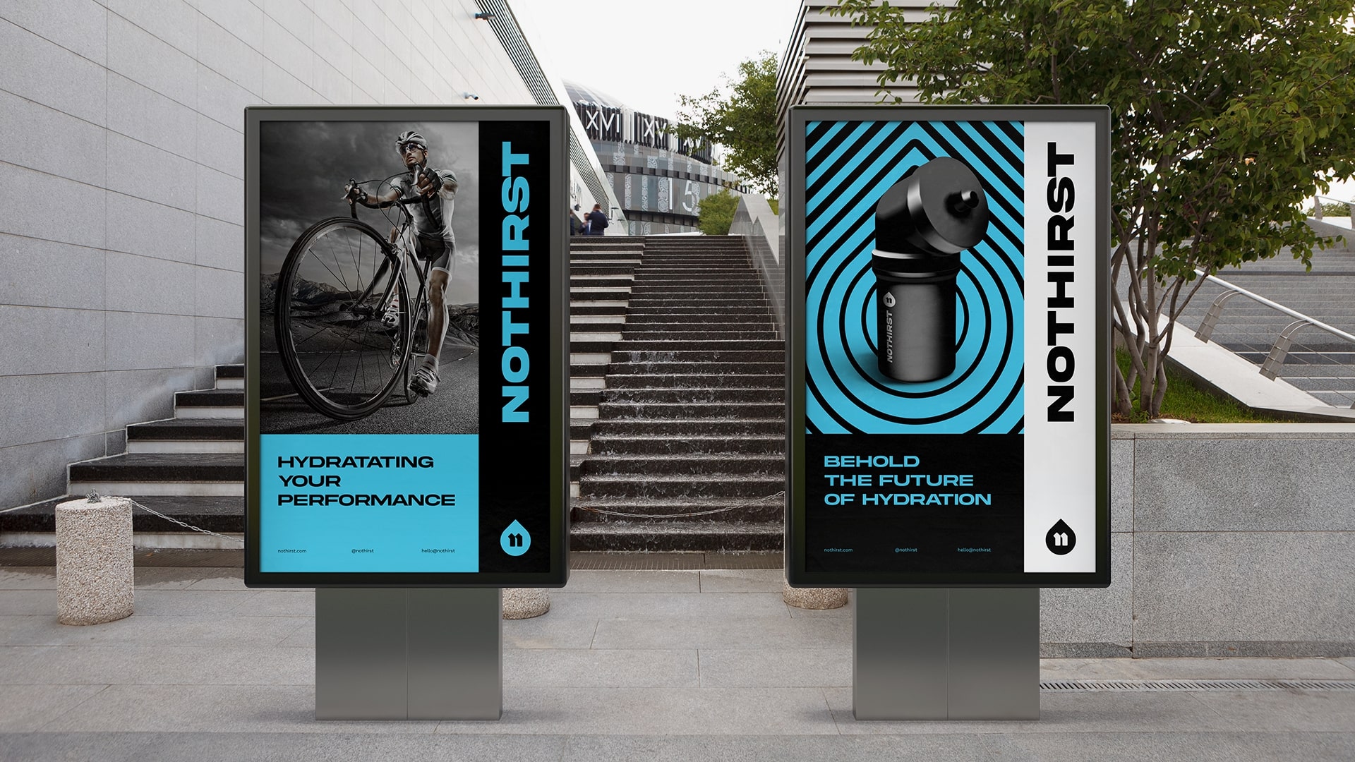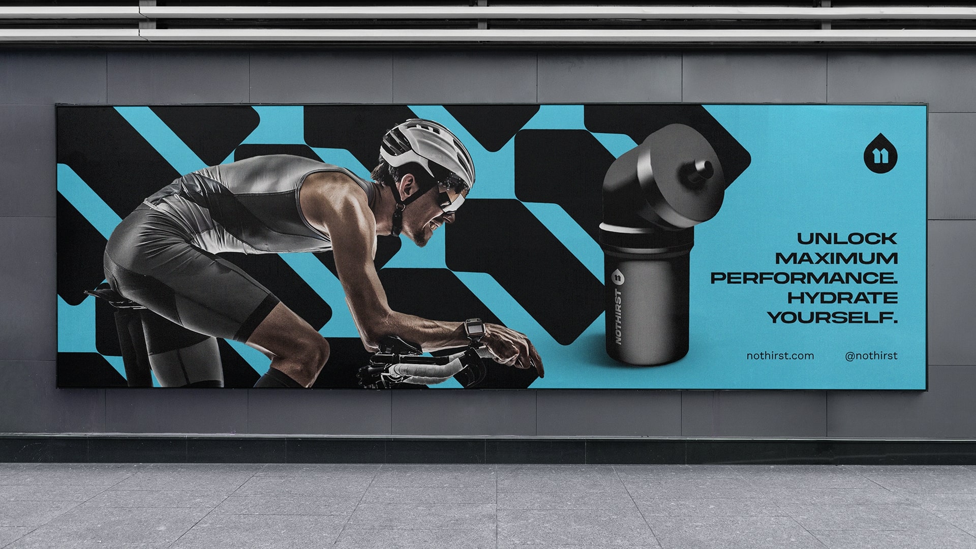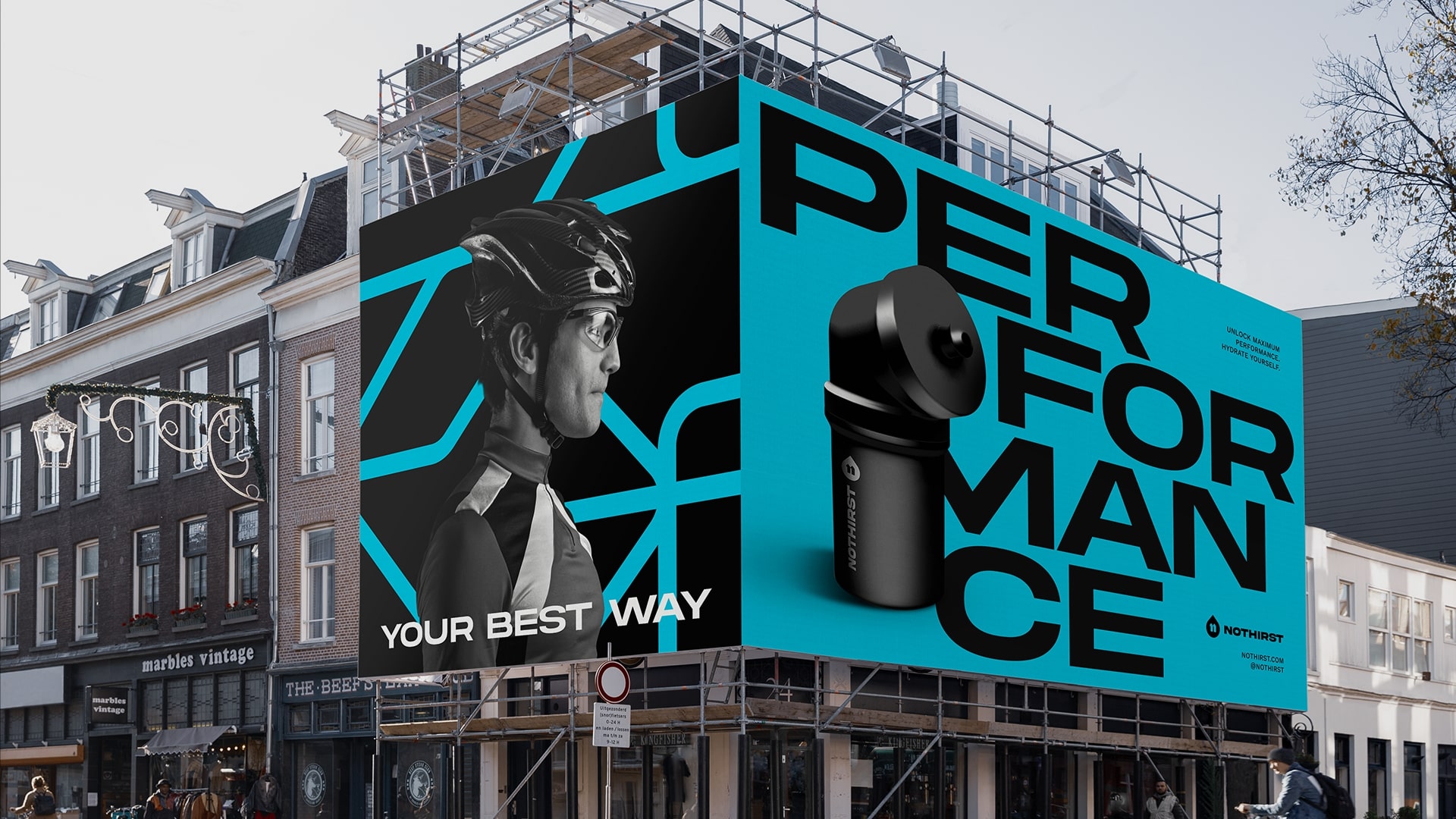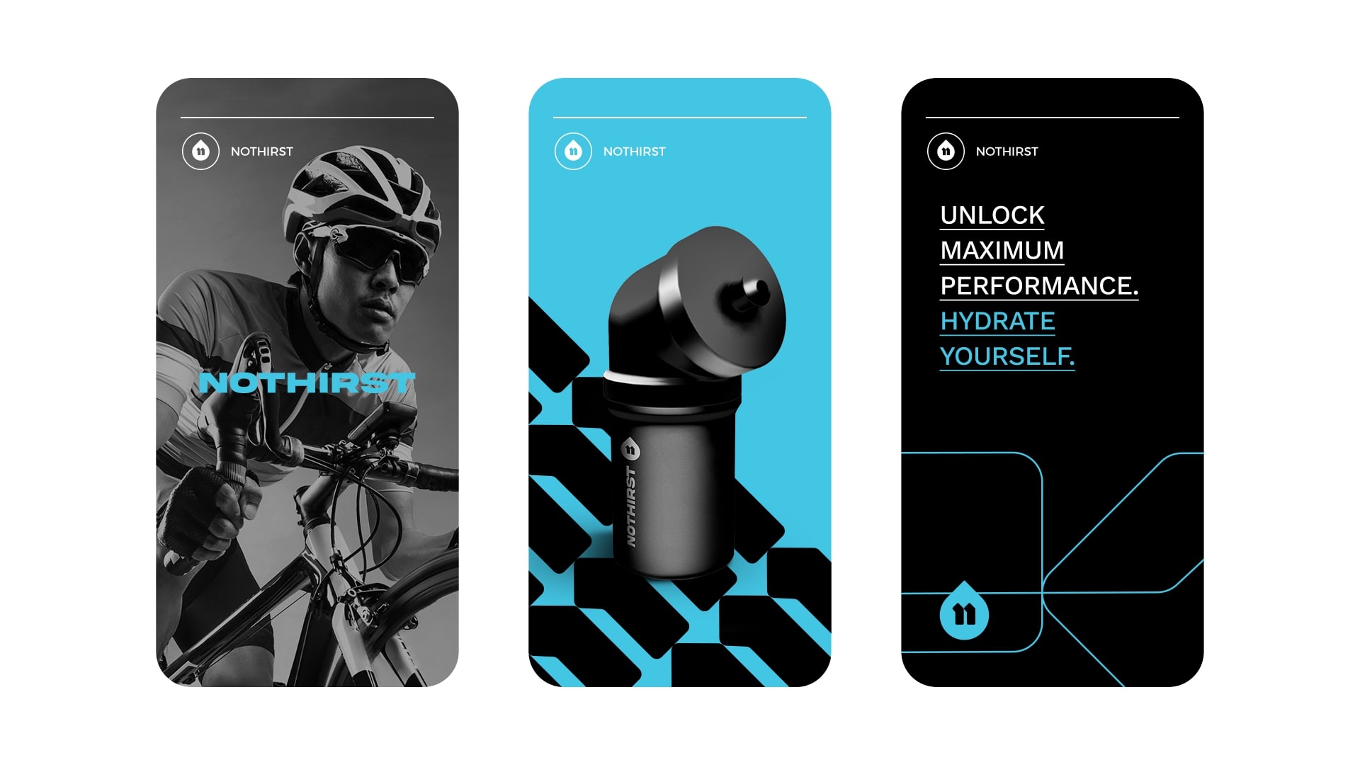 品牌形象设计之间建立起坚实的桥梁。No Thirst 是来自荷兰的积极生活方式品牌,专注于通过补水来提高运动表现,并计划在 2022 年推出针对自行车运动员的补水包。这些包装由运动水壶和一组补充剂组成,以提高运动员的表现,避免分心。