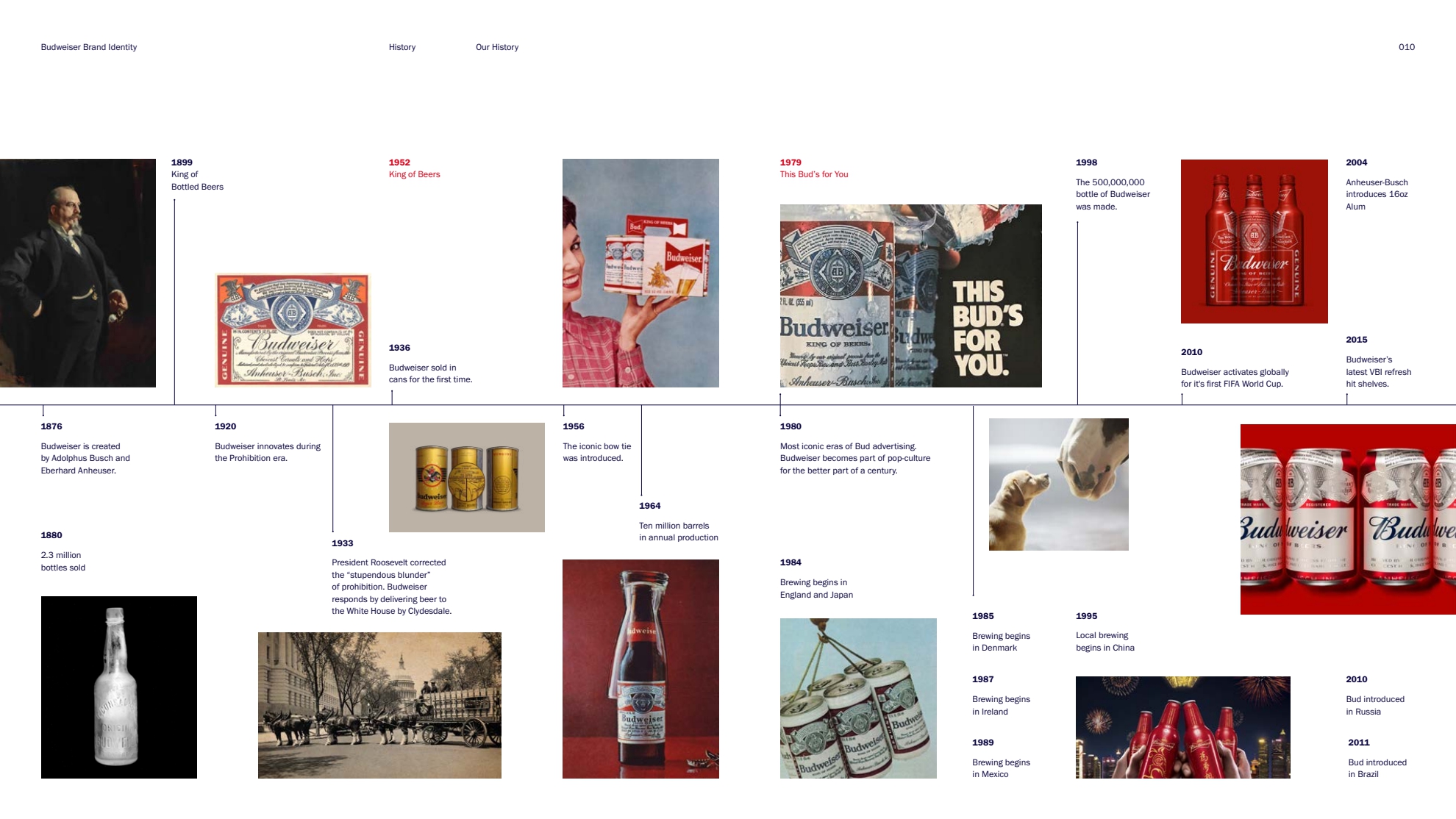 百威啤酒凭百年历史积淀,始终坚持着卓越的口感和优良的品质,获得全球消费者的认可与喜爱,荣登世界各地销售额最高,销售量最大的啤酒宝座。更是凭借对诸如奥运会、上海世博会、FIFA世界杯足球赛以及NBA篮球赛等世界级盛事的热忱赞助,以及诸如“百威音乐王国”这类年轻群体热烈追捧的时尚行列,充分展示出王者气派,毫无争议坐实了“啤酒之王”的称号。精简后的新LOGO设计、VI设计系统将使百威在全球品牌视觉上更好地实现“统一性”。