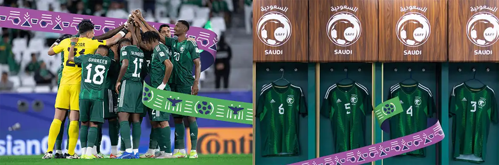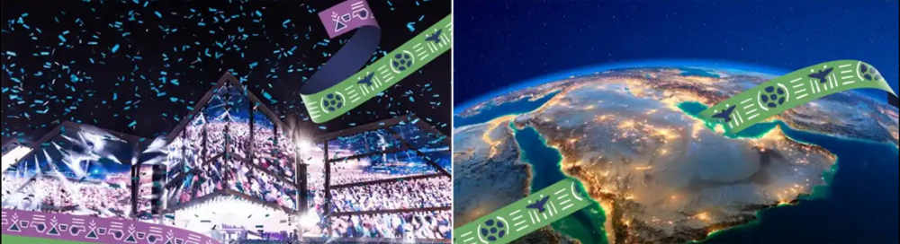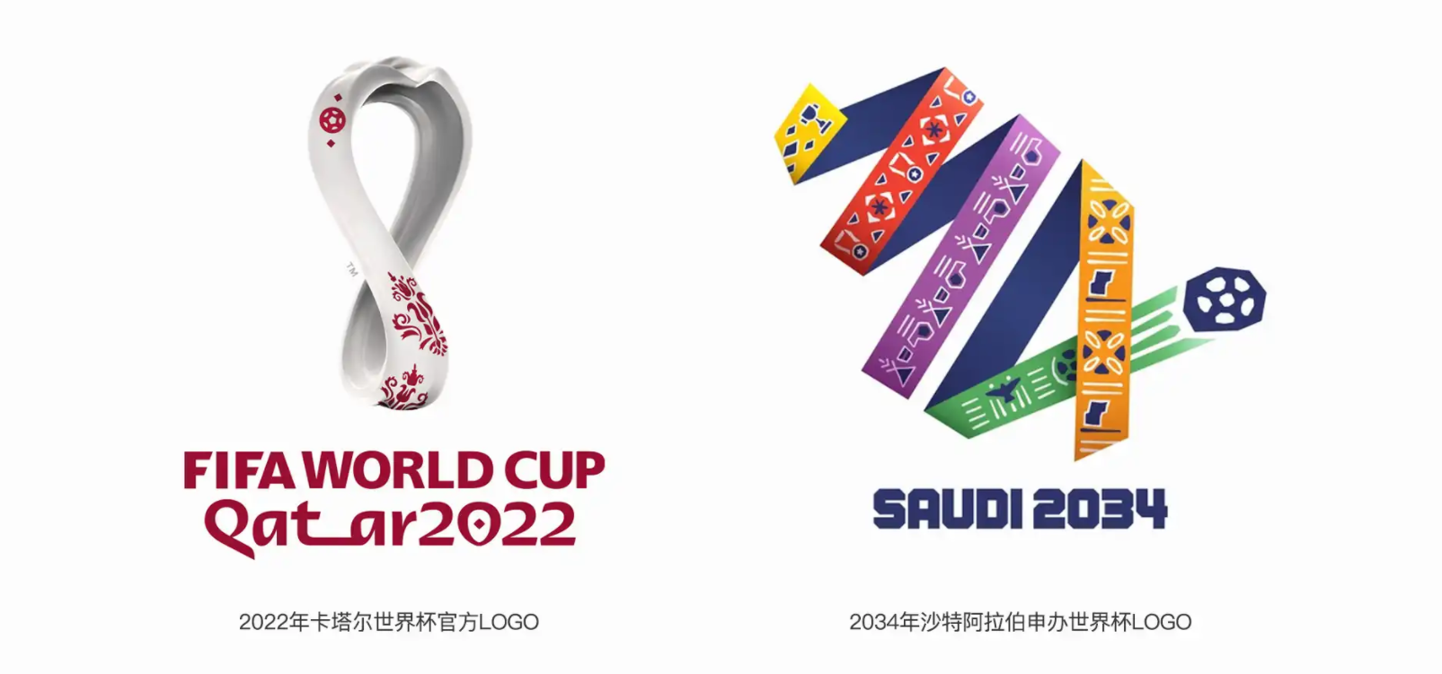 2034世界杯足球赛LOGO设计中五种不同的颜色反映了沙特的多样性和迷人的地形特征,其中橙色代表了慷慨和真实,绿色体。现了绿洲的美丽,红色的灵感来自于红海的珊瑚礁,薰衣草色反映了薰衣草花的颜色,黄色则体现了沙特人民对美好未来的梦想和抱负。
