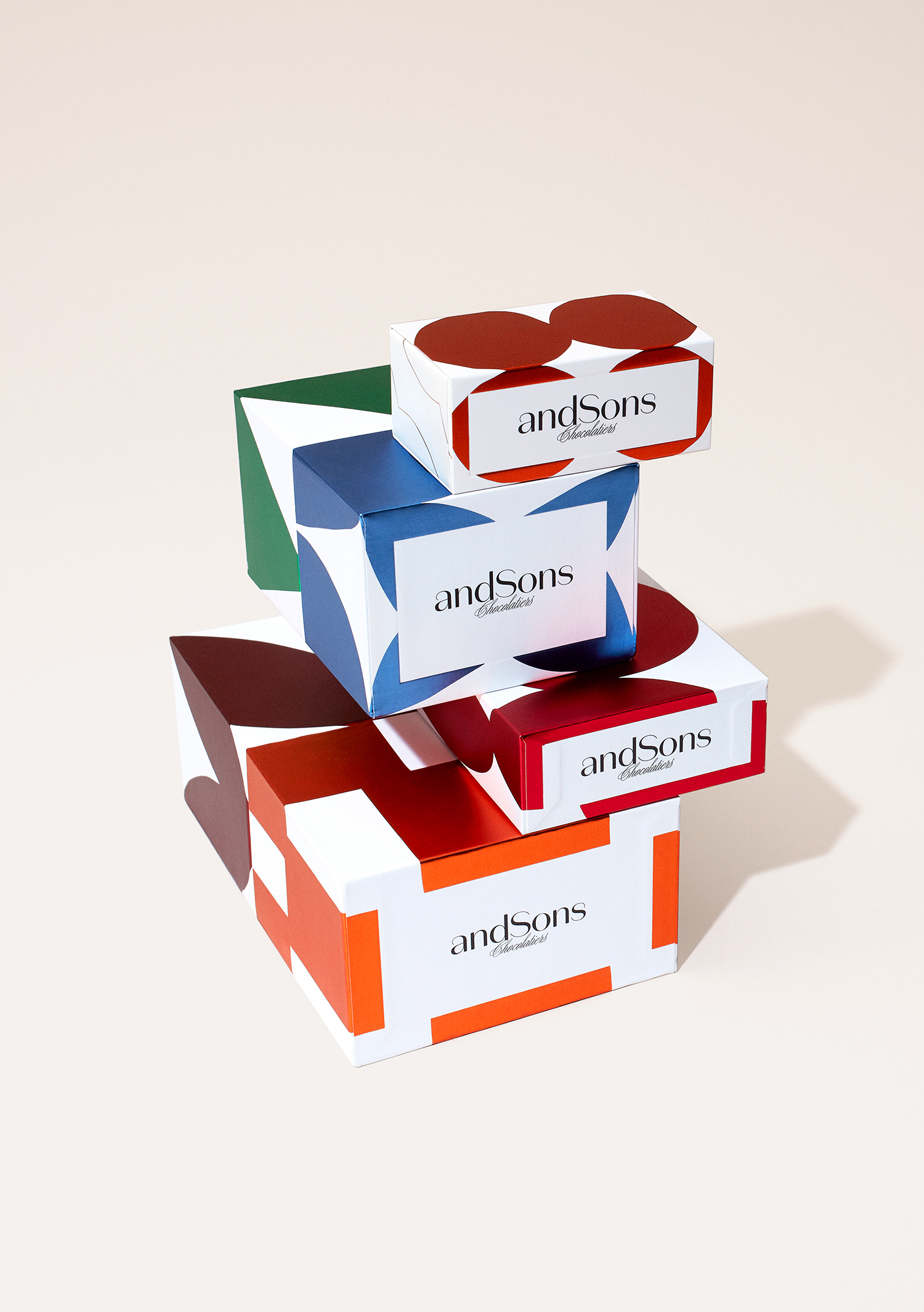andSons是第二代巧克力零售商,由马克和菲尔·科维茨(Marc and Phil Covitz)经营,这两个兄弟从母亲那里学到了一切有关精制巧克力的知识。十大糕点师克里斯·哈维(Kriss Harvey)与兄弟们一同前进,力求为手工巧克力世界提供新的东西,而桑斯(Sons)则在他们传统的欧洲遗产和他们所居住的洛杉矶的当代创造力之间建立了界限。考虑到这一定位,Sons委托基础设计创造标志性的