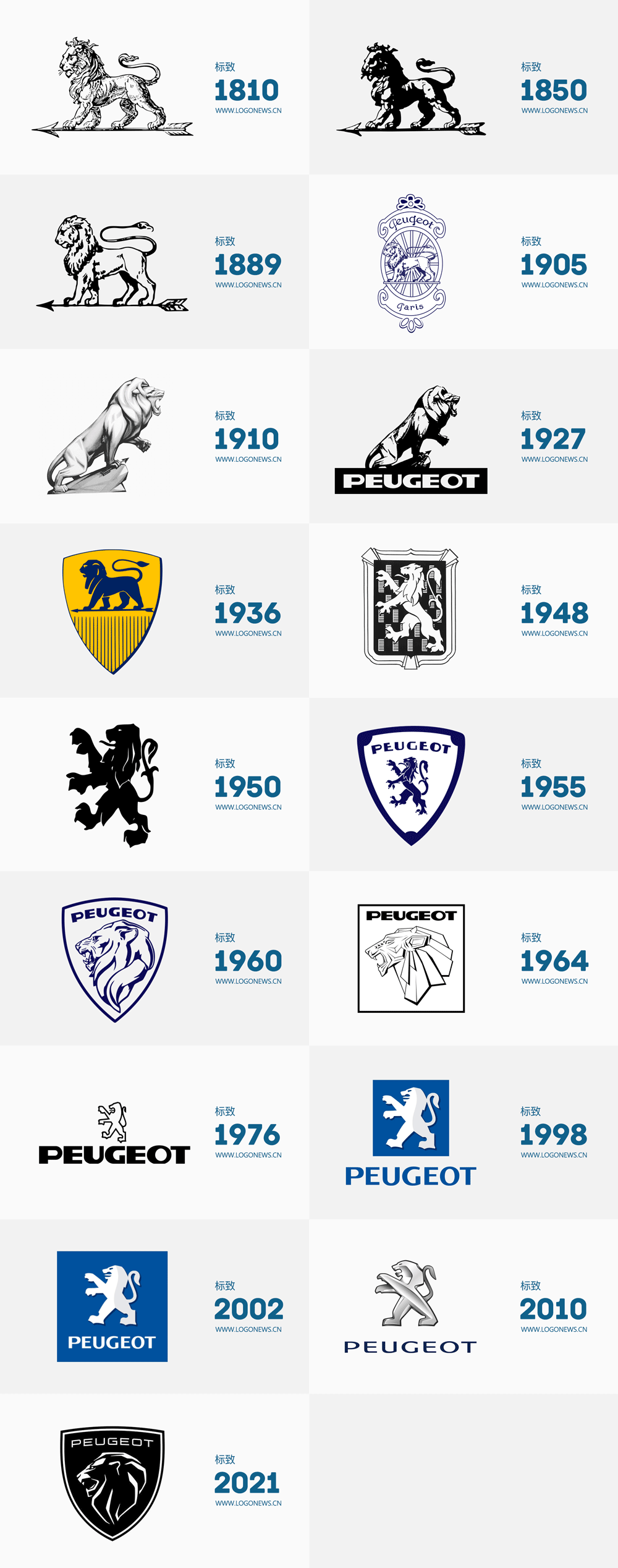 1950年代以来,标致开始使用站立的狮子,直到1970年代初,文字移到了狮子下方,这头狮子才开始变成如今我们熟悉的样子。
