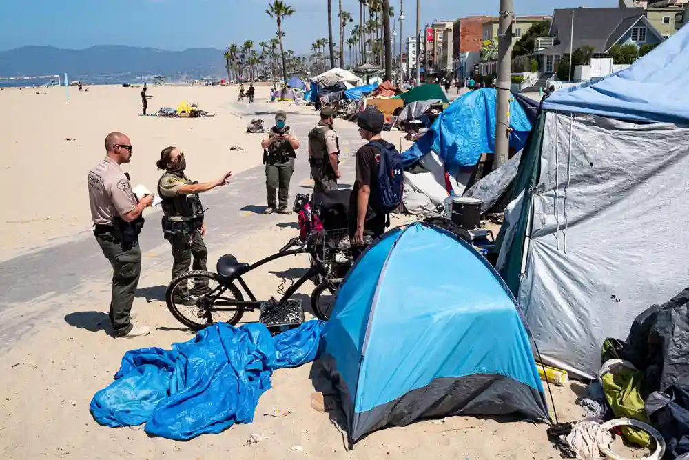 据悉,疫情爆发之前,洛杉矶无家可归的人数超过6.6万,在疫情的影响下,这一群体的数量迅速增加。在威尼斯海滩上挤满了临时帐篷,几乎形成了一个村庄,随处可见生活垃圾和碎石,空气中也弥漫着难闻的气味。