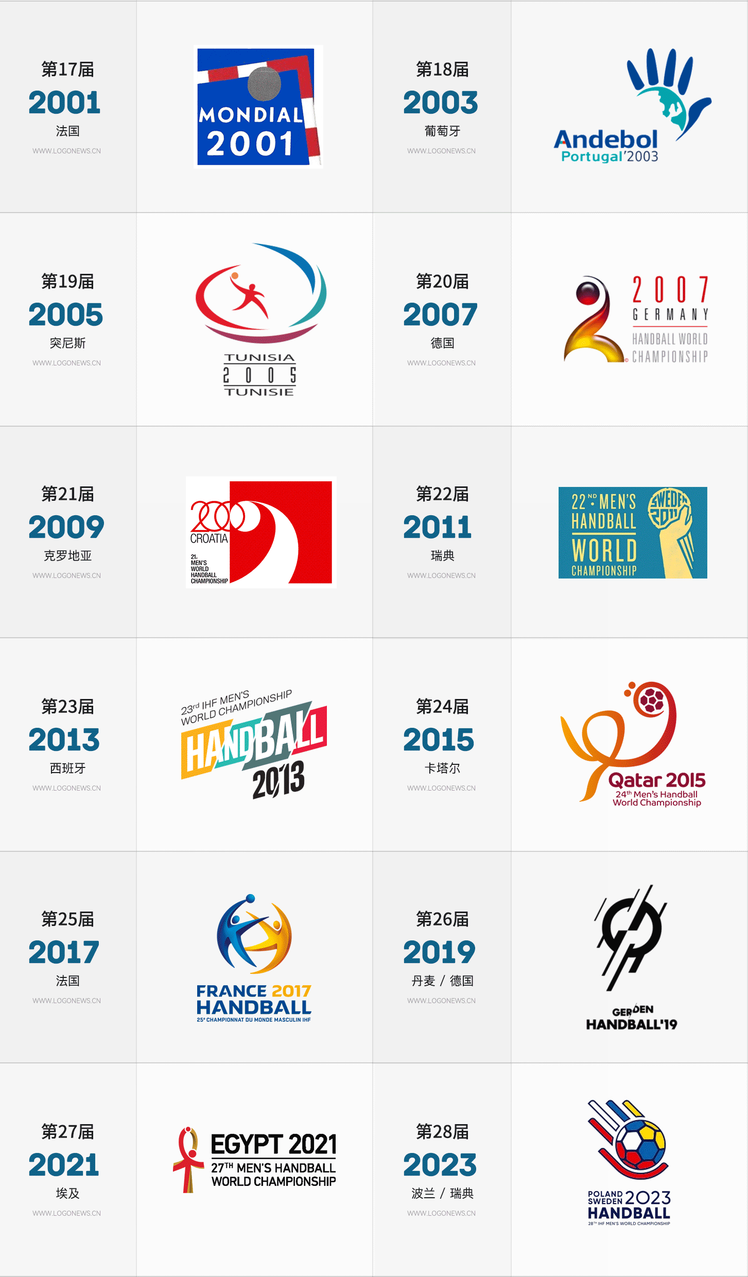 附:2001年至今历届世界男子手球锦标赛LOGO