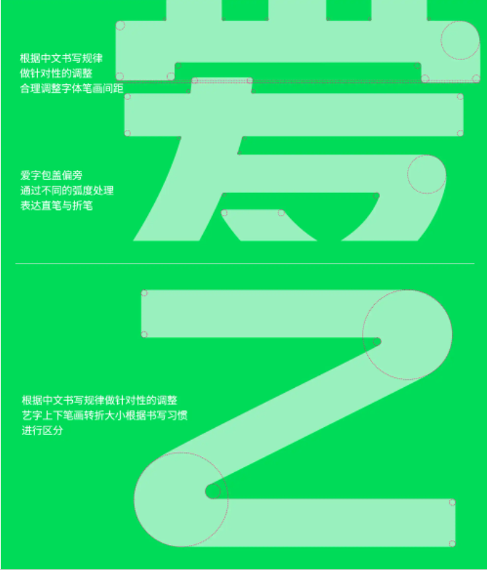 重新设计的中文字体让人眼前一亮。就像上面的英文字一样,中文字体的设计也遵循了圆角切割的设计手法,字体的关键部位以圆为基础构建造型,让字体呈现出更多细节和品质。