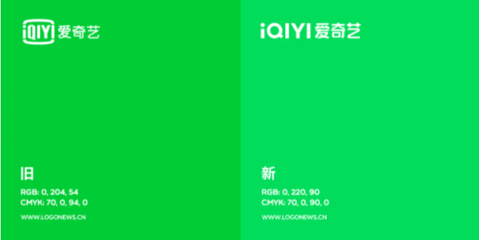 从上面的新旧对比中可以直观地发现,爱奇艺全新启用的LOGO设计中外边框不见了!而且品牌色也发生了明显的变化。那么具体都变了哪些地方?