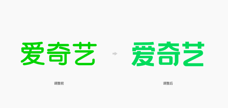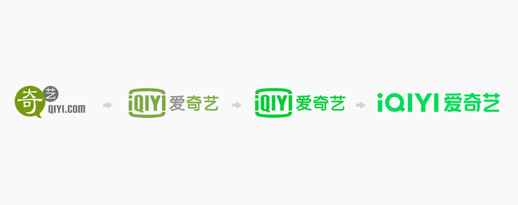 后来爱奇艺将该LOGO中「爱」字上面的灰色去掉,将颜色换成了更鲜亮的亮绿色,也就是我们目前看到的这个版本。