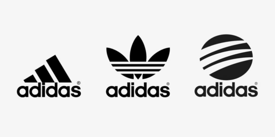 大多数品牌选择一个主要标志以保持一致性。然而,我们偶尔会看到一个独特的例外,比如阿迪达斯。该品牌有三个主要标志,根据系列可互换使用。他们通过使用相同的字体并在每个logo中延续其标志性的三条纹来保持凝聚力。这是一种不寻常的方法,不适用于大多数品牌,尤其是仍在发展业务的情况下。但作为全球第二大运动服装制造商,阿迪达斯获得了通行证。