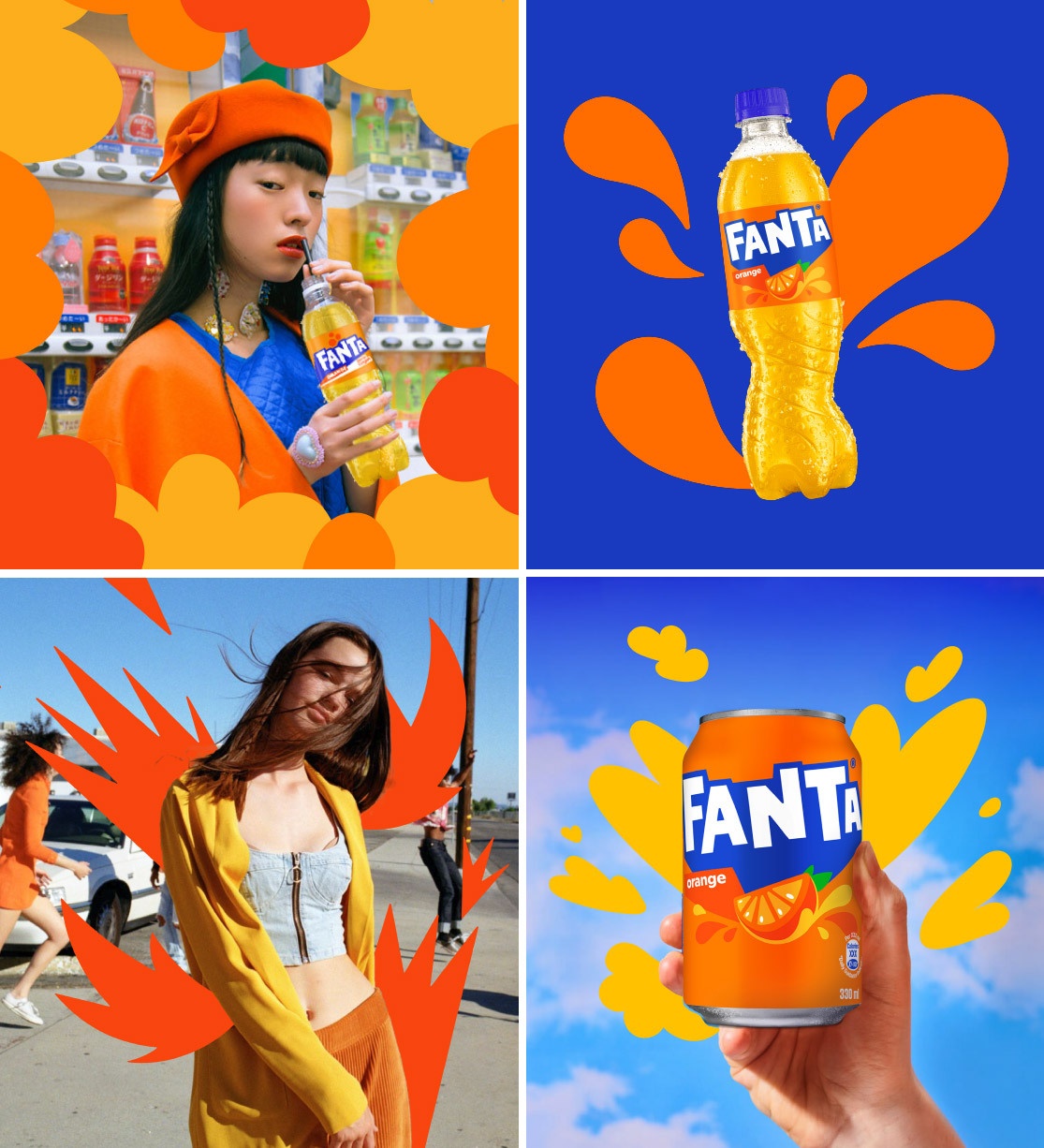 新的品牌颜色选用了特别的橙色和更加明亮的蓝色,旨在传达更年轻、更活力的品牌形象。这些颜色的运用不仅可以引起年轻消费者的共鸣,更能够让人联想到“年轻”、“活力”等关键词,进一步增强了品牌的吸引力。相信焕新后的芬达FANTA品牌色将更加吸引目光,在货架中脱颖而出。