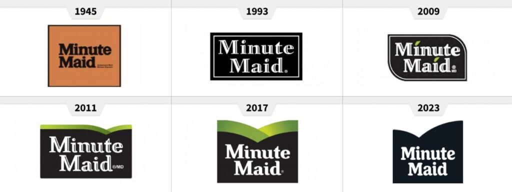自 1945 年诞生至今,Minute Maid 标志在其标识上只经历了 4 次迭代。