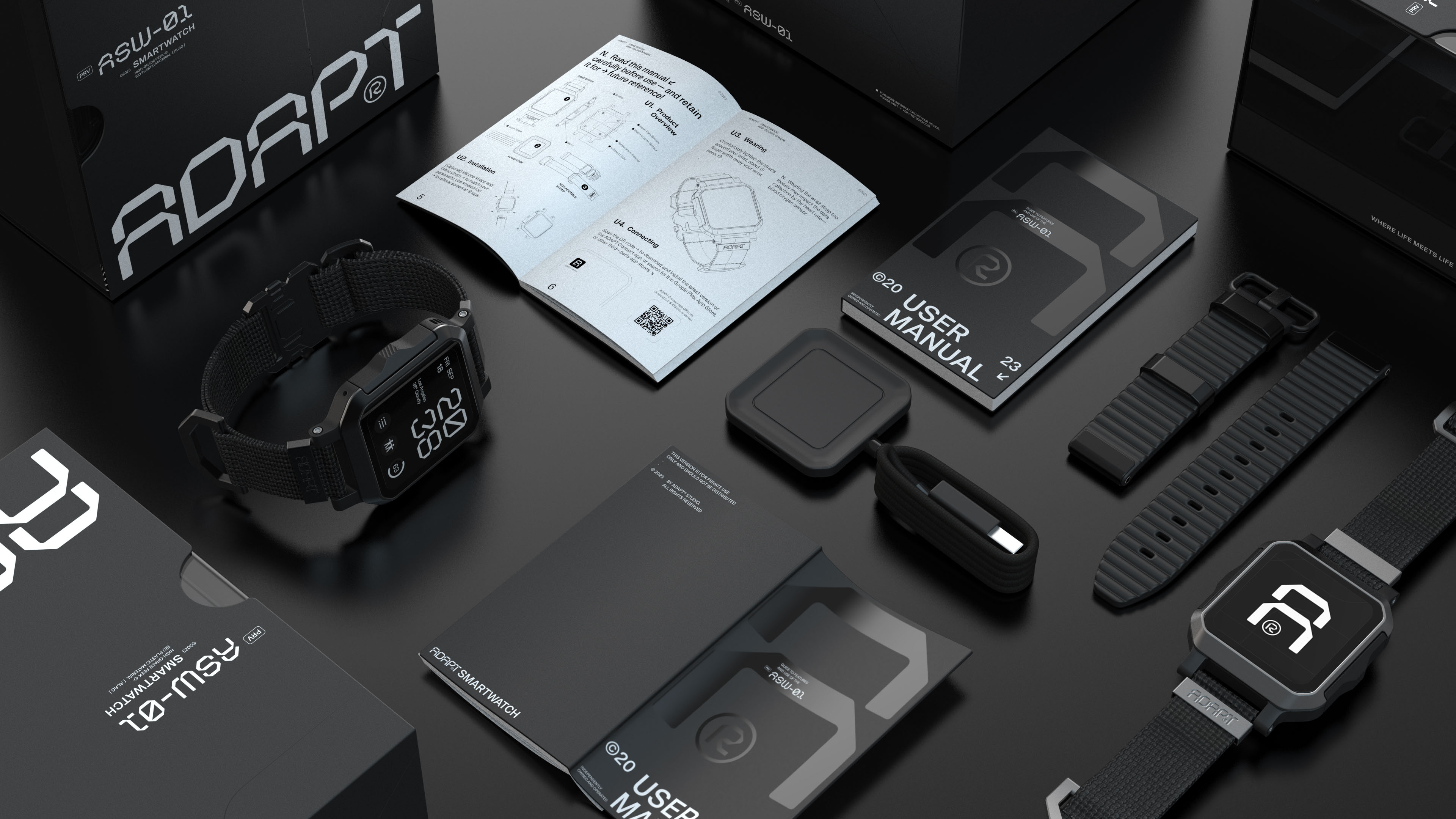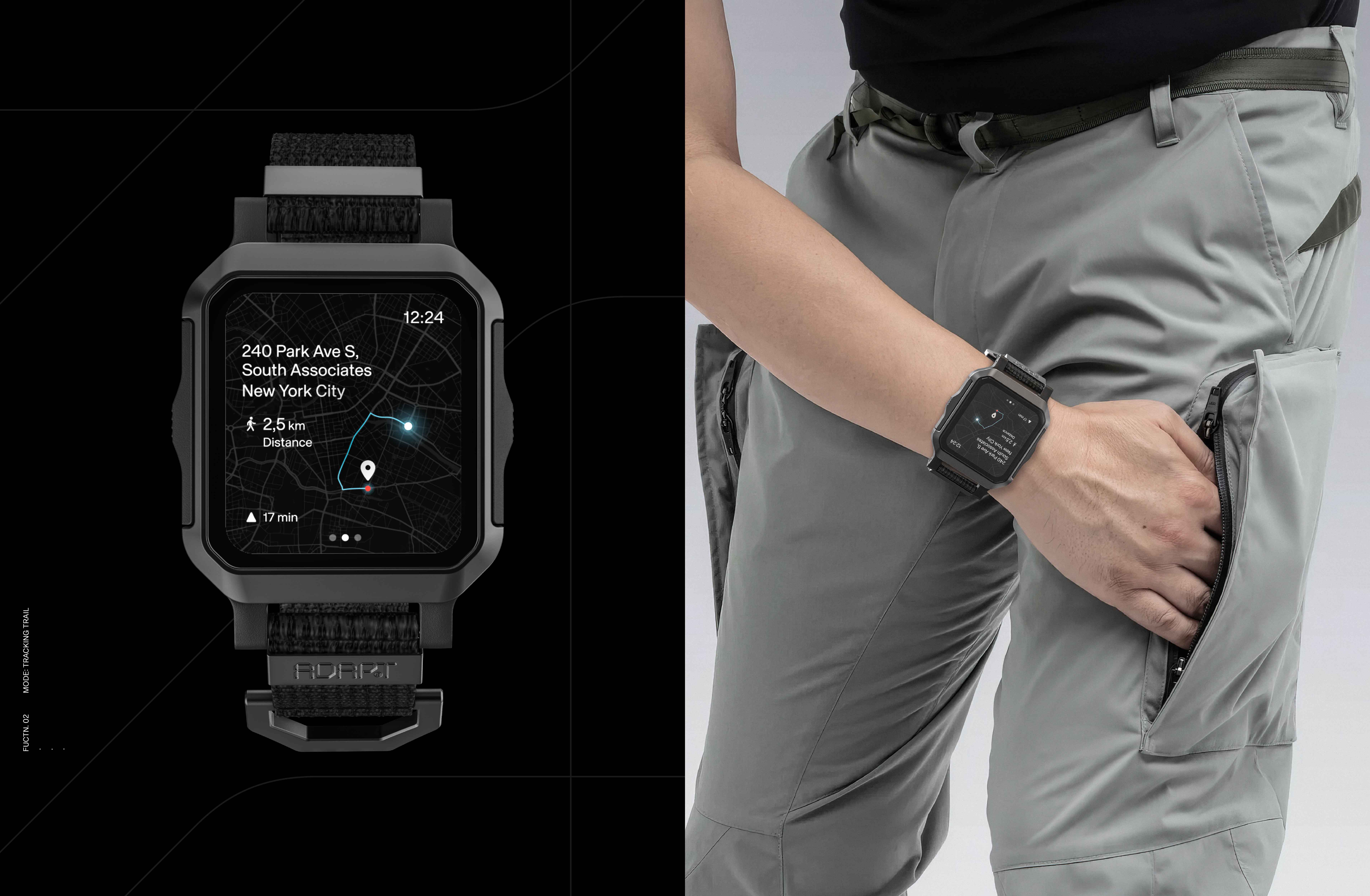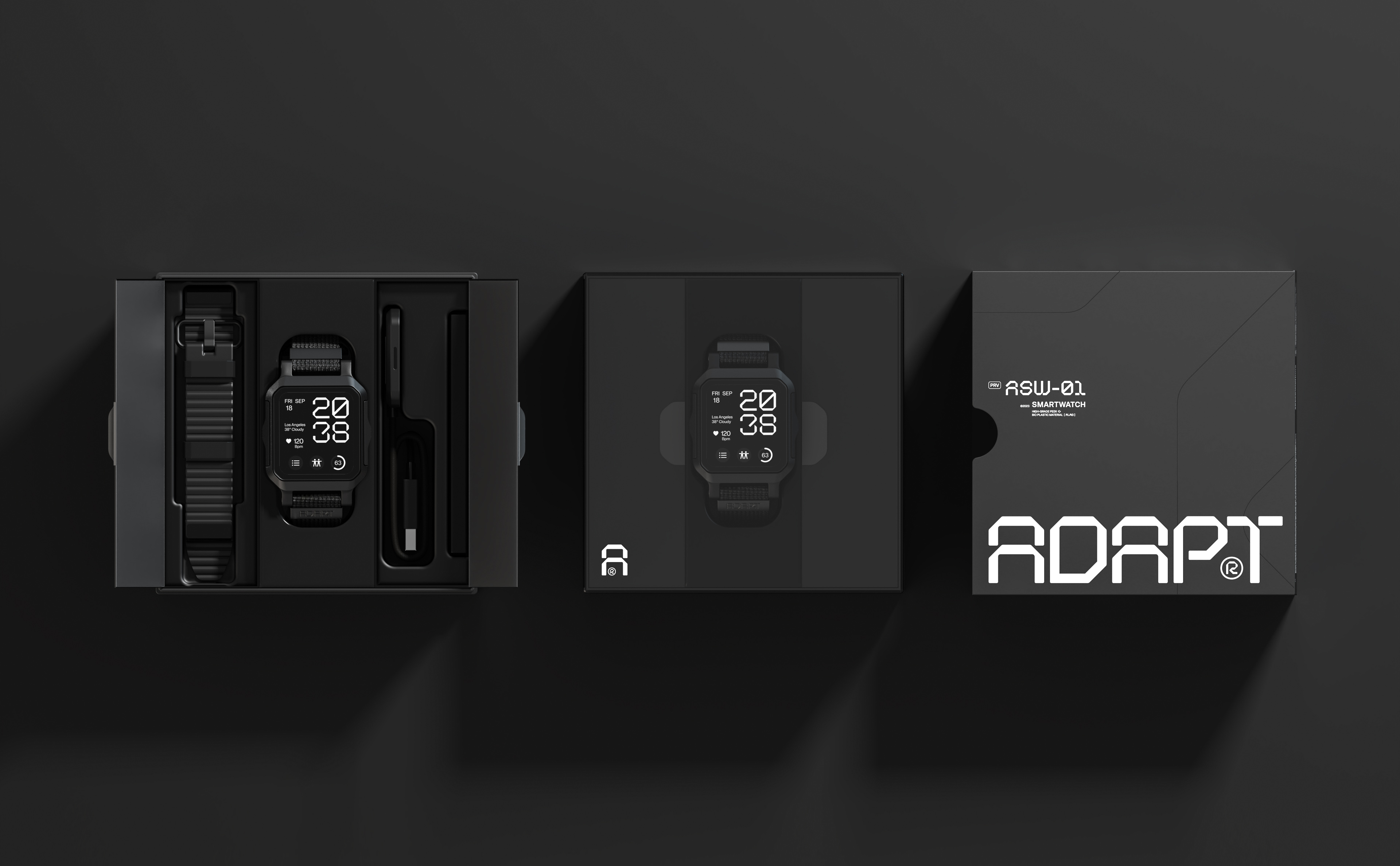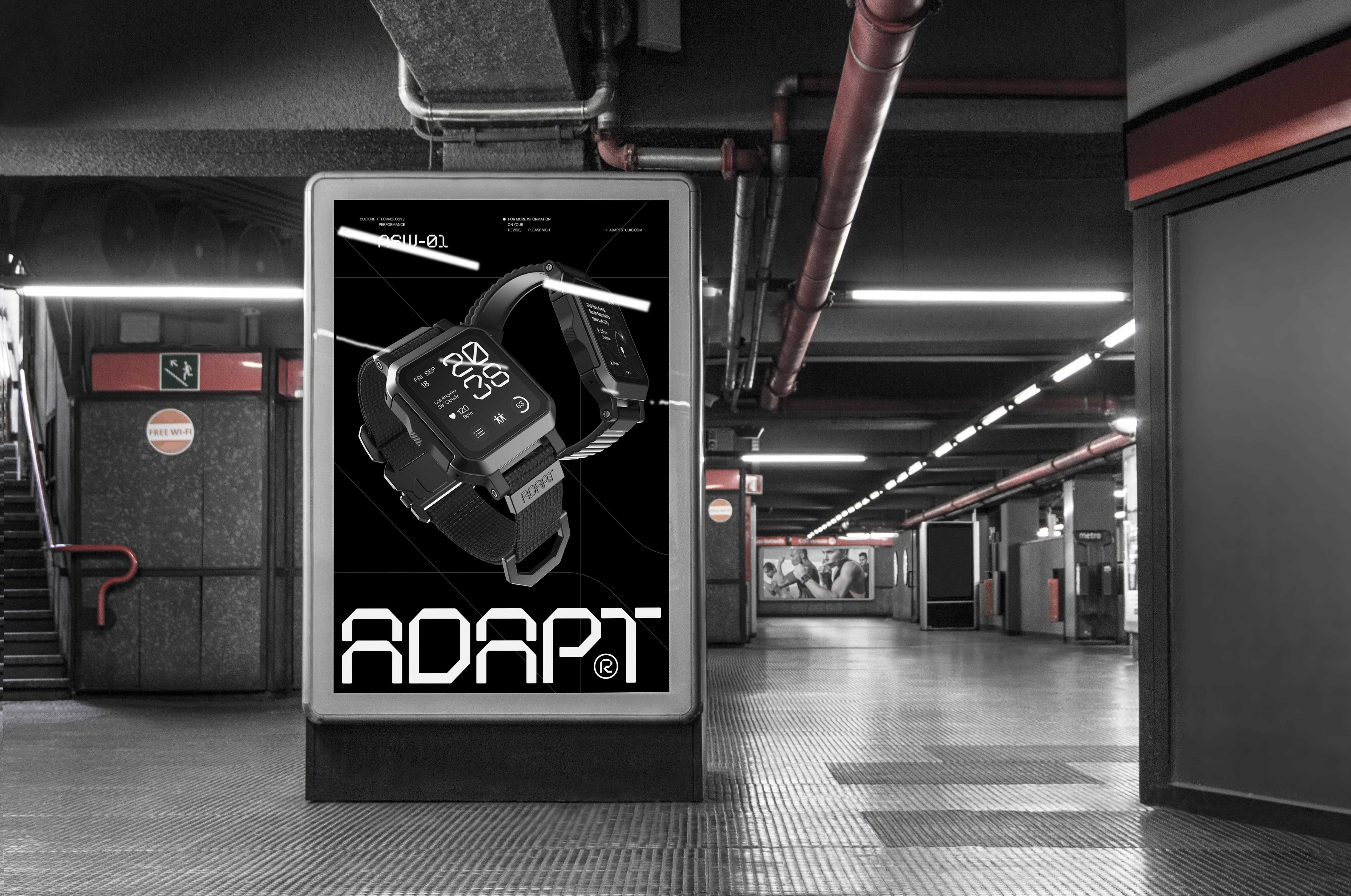 品牌项目是为“ADAPT”设计的,这是一个受Techwear时尚启发的智能手表品牌,旨在支持消费者生活中的最大活动。