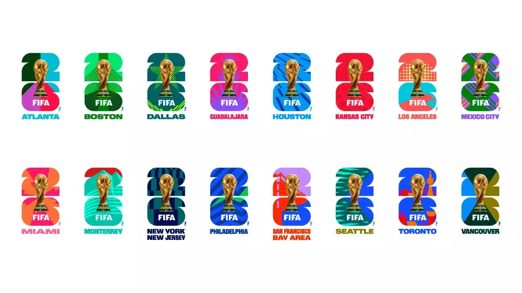 除了世界杯标志,国际足联还展示了16个主办城市标志。其基础是世界杯标志。然而,与世界杯标志相反,主办城市标志中的数字“26”是彩色的。