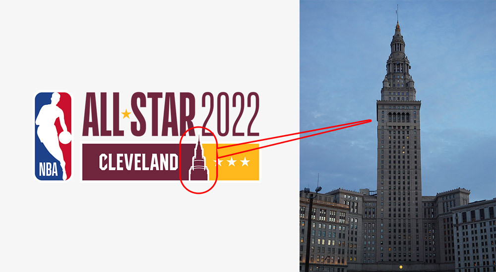 官方表示,三个五角星代表了1981年、1997年和2022年在克利夫兰举办的三届全明星活动。Terminal Tower 高235米,共有52层,是上世纪20至30年代建立的一座建筑。在1991年 Key Tower 楼建成之前,它一直是俄亥俄州的最高建筑。