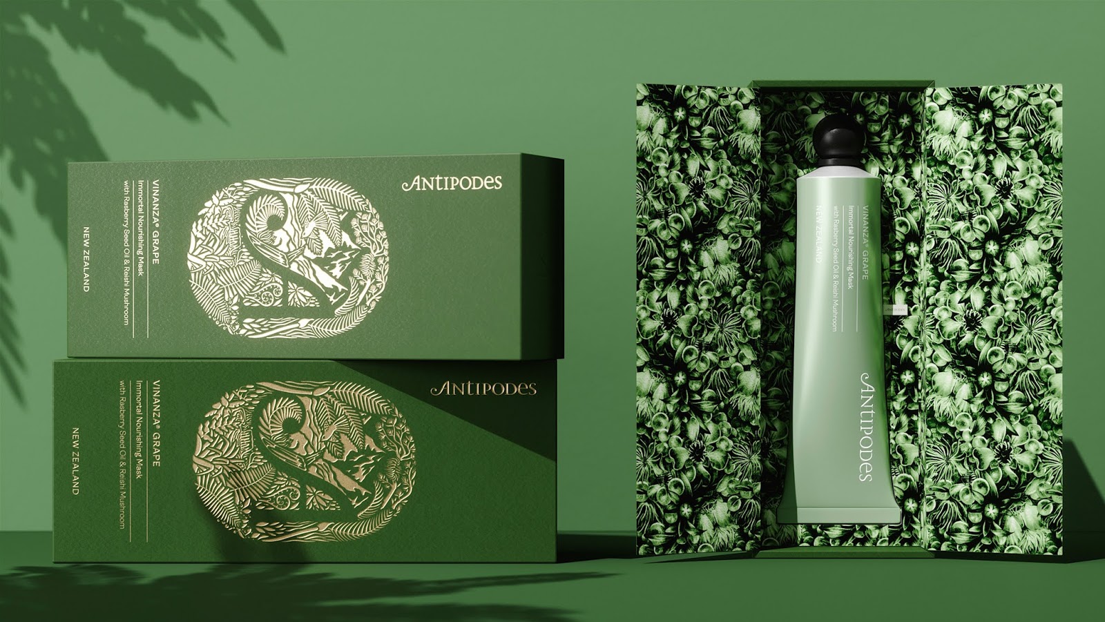 Antipodes的品牌专注于在世界边缘的茂密绿色新西兰森林中提供世界上最优质的护肤品?!?Vinanza葡萄是一种革命性的抗氧化剂提取物,可持续地从Marlborough sauvignon blanc葡萄种子的副产品中提取?!?该声明是我们对新Antipodes设计概念的主要灵感。
