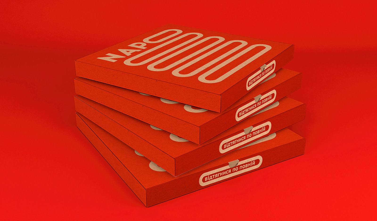 乌克兰人生活中的品牌意大利款待:将奶酪从那不勒斯延伸到乌克兰城市。最主要的是让比萨饼负担得起。更改了 NAPO 披萨的标识。我们使用了 2 个基本参考——比萨面团和比萨盒。我们可以用拉伸字母中的面团进行类比,就像一团面团。我们在标志设计的扩展版本中阅读了对披萨盒外观的视觉参考。我们建议它引入与您想随身携带的一堆热盒的关联。