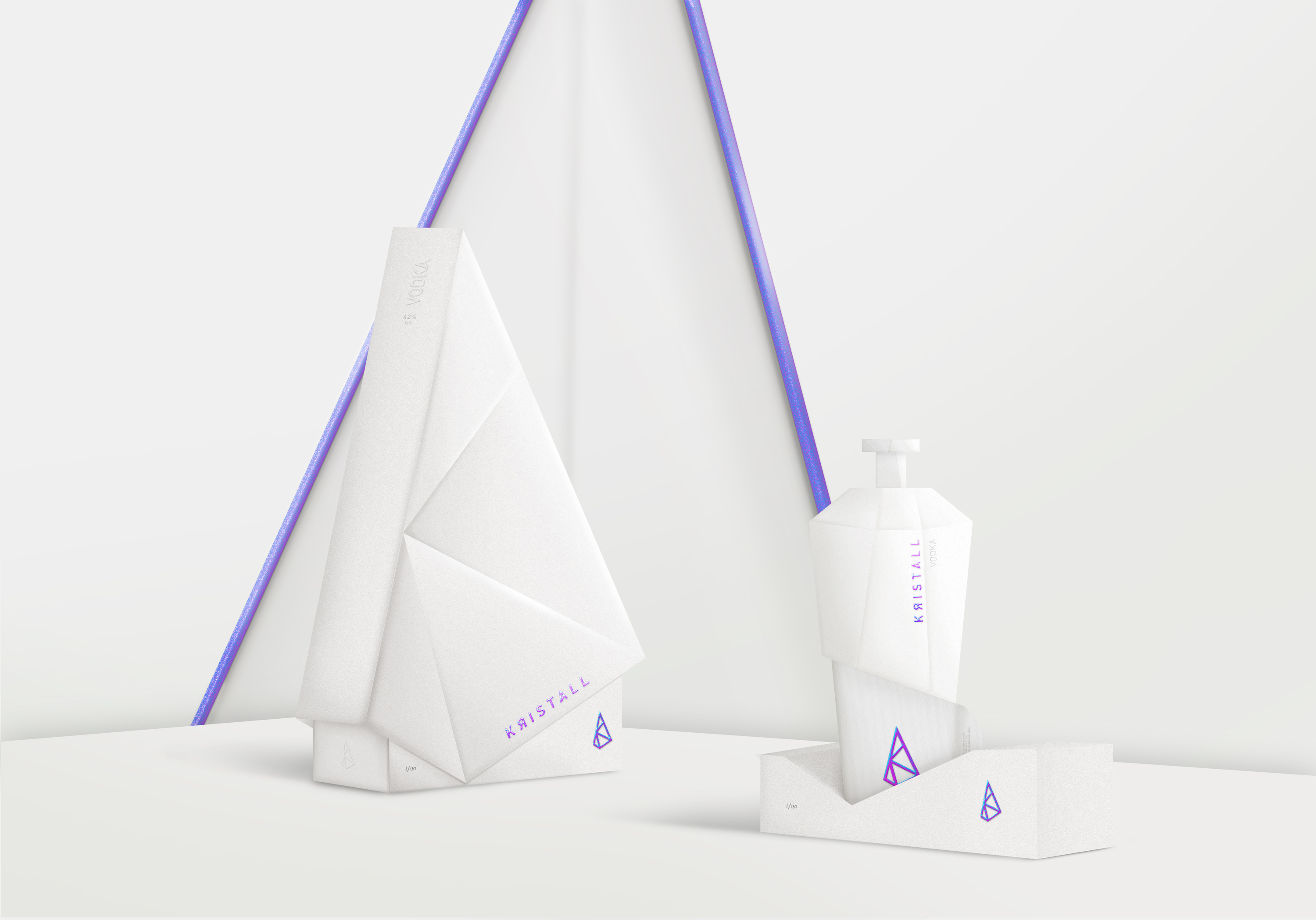 Kristall Vodka 限量版包装的灵感来自水晶的形状和稀有性。纯净的白色,像钻石一样破碎和锐化,带有一丝让人想起水晶颜色的光彩。如此高端的包装必须精心设计。