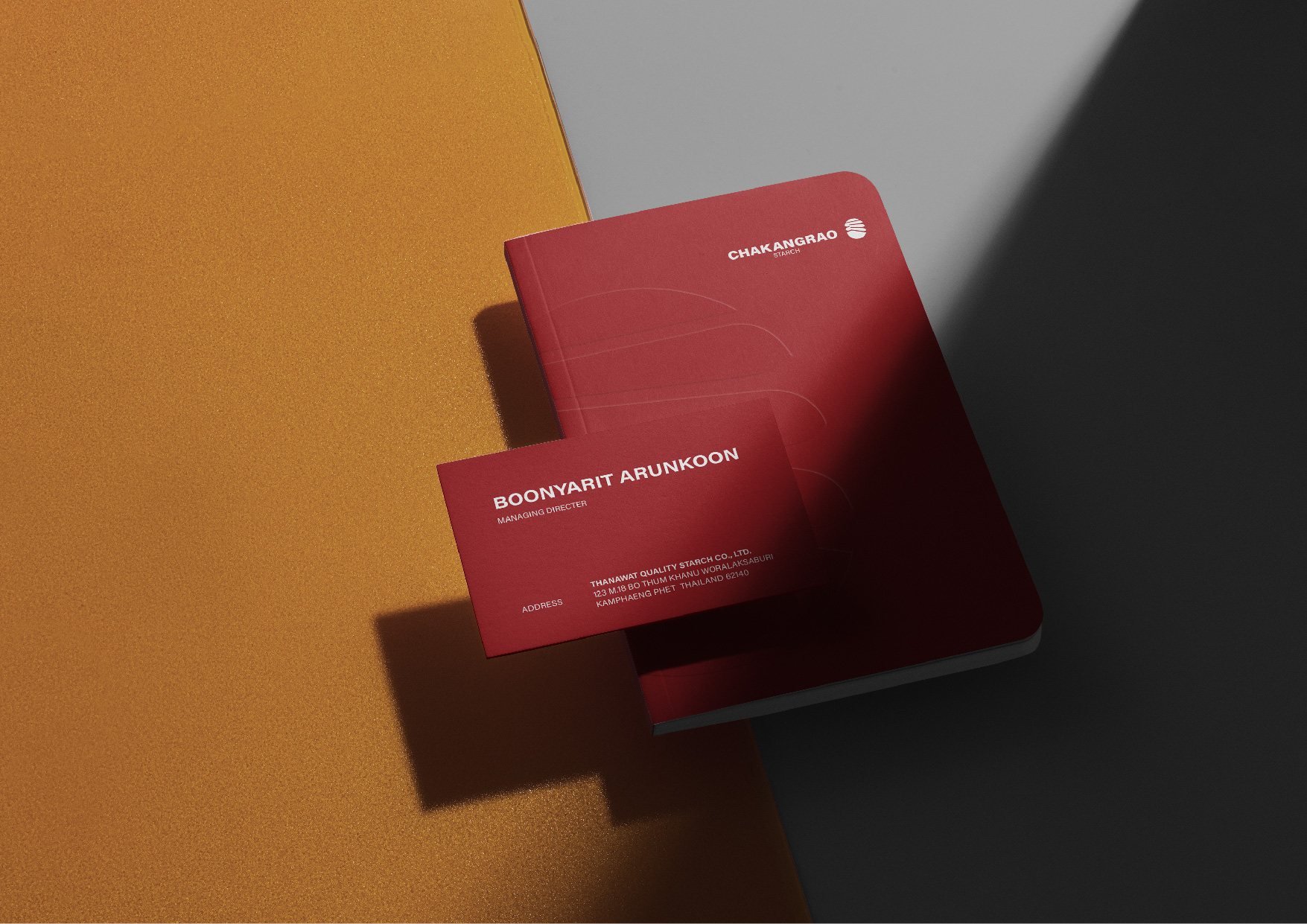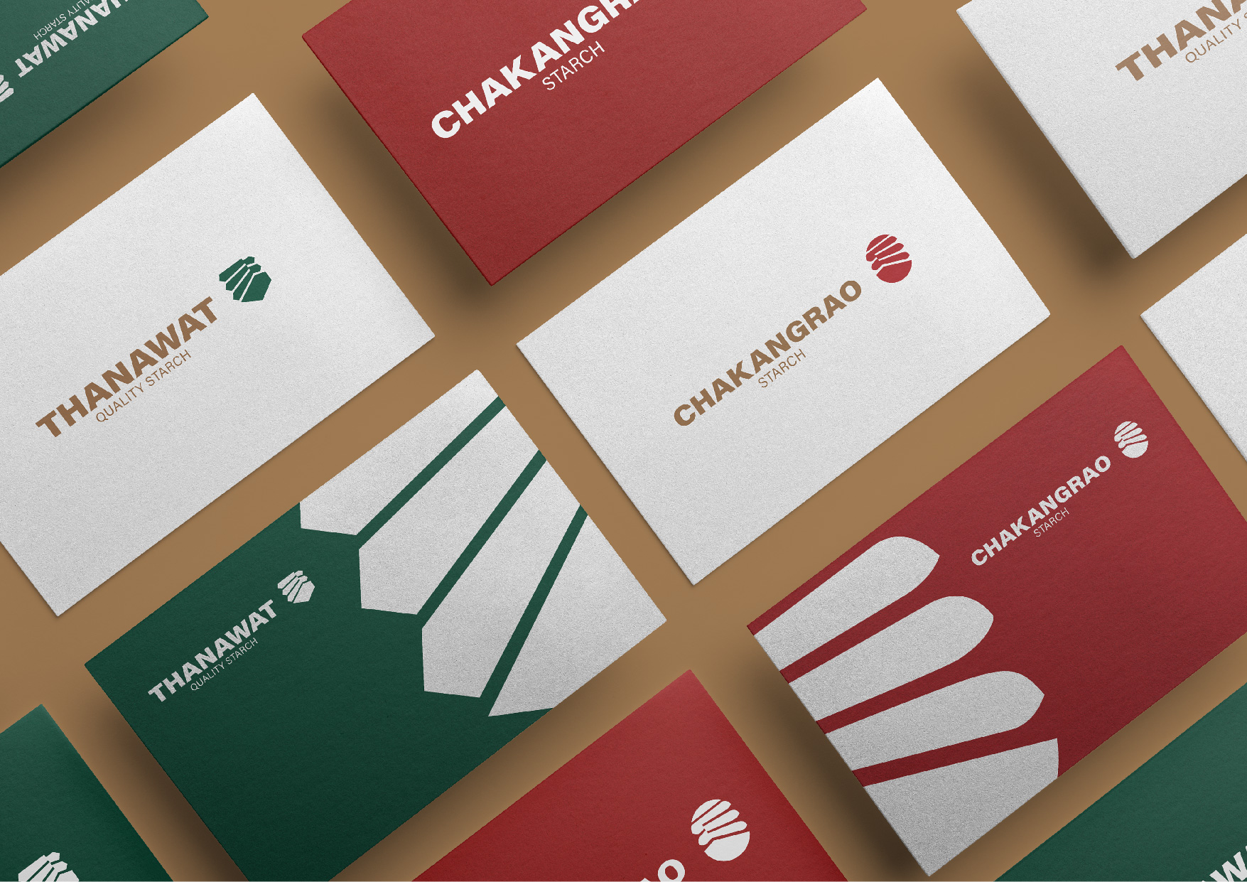 设计:设计必须设计为两个工厂是相关的,因为两个工厂都来自家族企业并且也相互供应。该设计必须具有与普通木薯磨坊不同的口味。设计不得看起来像工厂的图像。但它必须表现出对这个过程的品味。来自世界各地的知识将生产出最好的面粉。在概念过程中。我们使用经典西方标志的形式。来做纹章的主要思想。意义源于品牌,源于家族企业。其次,我们想,我们如何添加更喜欢木薯业务的东西?两种纹章都必须以木薯叶为主要元素。并且彼此有点不同。我们选择 Thanawat 为盾形,而 Chakangrao 为椭圆形。