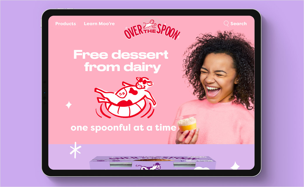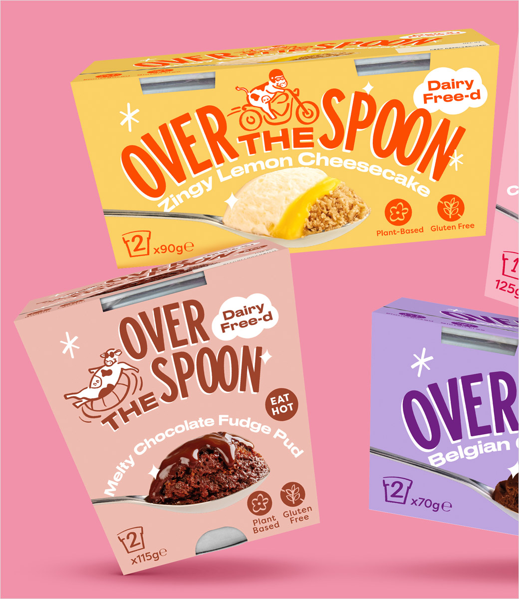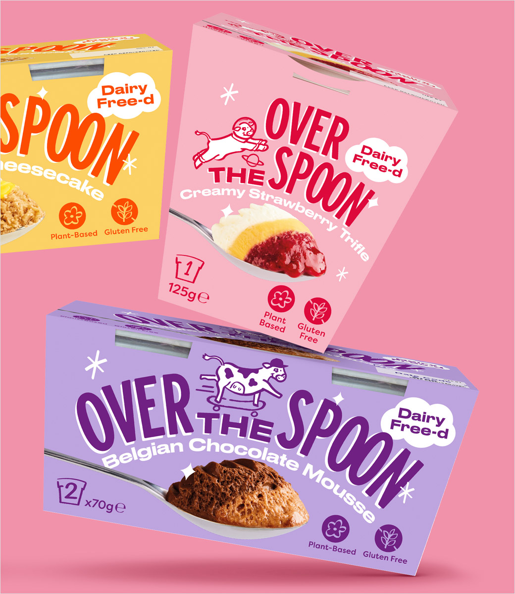这个概念最终促使 Robot Food 创建了新的品牌名称“Over The Spoon”并制作了领先的包装标注:“Dairy Free-d”。